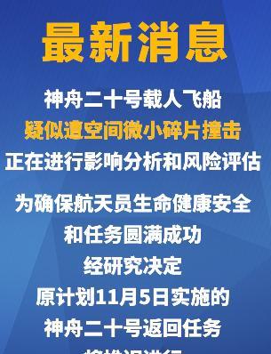 全球速度最快的航天救援记录或将在中国诞生!但事实上却是我们最不希望看到的结果,目前神舟二十号的损伤情况还在评估中,央视新闻公布神舟二十号被空间碎片撞击后,全中国人民都非常揪心,飞船损伤到底如何,空间站有没有被破坏,神舟二十号还能安全返回地球吗? 11月5日晚上,不少人守在手机和电视前,等着看神舟二十号载人飞船返回地球的直播。 可中国载人航天工程办公室的一则通报让大家的心瞬间揪了起来:原定当晚20点20分着陆的神舟二十号,因为疑似碰到了太空里的微小碎片,返回任务得往后推了。 可能有人会问,不就是个小碎片吗,至于推迟返回吗?要知道,太空中的这些“小不点”,可是藏着大危险。 更吓人的是它们的速度和力道,这些碎片在太空里每秒能飞7.9公里,比子弹快了足足8倍,哪怕是一粒芝麻大小的铝屑,撞在飞船上的力道都跟一颗炮弹差不多。 其实神舟二十号会面临这种风险,航天团队早就想到了。 这艘飞船是采用径向对接的方式和空间站连在一起的,就像空间站的“侧翼”,对着飞行方向的面积更大,碰到碎片的概率本来就比其他对接方式高。 但这不是设计上的疏忽,反而是中国航天“把风险想在前头”的表现,既然太空里有这样的隐患,那就在防护和应急上做足准备。 面对这些太空里的“隐形杀手”,神舟二十号可不是没穿“防护衣”。 它身上的惠普尔盾多层防护结构特别有讲究,最外层故意做得容易碎,就是为了把撞过来的碎片撞成更小的颗粒。 中间的间隔层再把冲击力散开、减弱,最后由最里面的舱壁把剩下的力道接住。 光有防护还不够,中国航天还备好了“双保险”,现在天宫空间站是“三船三舱”的状态,除了天和、问天、梦天三个核心舱,还有天舟九号货运飞船和神舟二十号、二十一号两艘载人飞船在天上。 空间站里面的保障也够扎实,6个独立的睡眠舱、2个卫生区,加上能根据人数调整功率的制氧和水循环系统,就算6名航天员长期在里面生活也完全够用。 10月31日神舟二十一号乘组入驻的时候,两个乘组在空间站一起工作生活了好几天,这套系统早就经过了实战检验。 现在控制中心的排查工作还在紧张进行中,工程师们一遍遍地分析飞船传回来的传感数据。 仔细听着舱内的每一点细微声响,控制系统、推进系统、能源设备,一个一个地检查过去,哪怕是毫米级的损伤也绝不会放过。 这次返回任务推迟,不光让国人牵挂,也引起了世界宇航界的关注。 大家都在看着中国航天怎么应对这场突发情况,而这恰恰成了检验我国太空安全体系的一次实战。 太空探索从来没有绝对的安全,能做的就是把准备做到极致。 神舟二十号这次推迟返回,不是因为能力不足,反而是中国航天底气的体现。 它用实实在在的经历验证了我国多年筹备的太空安全体系,更让大家明白“宁备不用、不可无备”的道理有多重要。 我们有理由相信,等排查结束,航天员们一定会平平安安地回到地球;更期待这套经过实战检验的安全体系,能为人类探索太空的路,铺得更稳、更宽。 信息来源:澎湃新闻2025-11-05发布:疑遭空间微小碎片撞击,神二十载人飞船返回任务将推迟进行 科技日报2025-11-06发布:航天员推迟回家,“罪魁祸首”是空间碎片