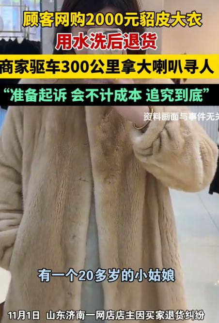 “专治白嫖党!”10月22日,山东济宁,二十多岁小姑娘网购貂皮大衣,用水洗后恶意退货还死不承认!老板忍无可忍,驱车300多公里杀到对方小区楼下,手持扩音喇叭开启“人肉搜索”模式!”网友:这样的人真的很恶心,你穿了的衣服退回去卖给谁? 王女士(化名)开皮草店已经好多年了,店不算大,但生意一直稳稳当当。 平时她不仅在商场里有柜台,还在网店上做销售。 为了留住客户,他对售后特别讲究,只要顾客退货的衣服没穿过、也没损坏,他几乎都是爽快答应,从不拖泥带水,很多老客户也因此信任他。 10月底,一个来自济宁嘉祥县的二十多岁姑娘,在她网店里下单了一件1888块钱的浅色貂皮大衣。 那几天正赶上促销,王女士忙得脚不沾地,但每一件皮草发货前她都要仔细检查一遍,怕有划痕、掉毛,甚至还特意录了打包视频留证。 22号发货,24号买家签收,一切都挺正常。 谁知道6天后,买家突然申请退货,说“尺寸不合适,穿着显胖”。 王女士当时也没多想,想着这种情况常有,只要衣服没穿过、没损坏,她一向都退得干干脆脆。 可当快递包裹一拆开,她整个人都愣住了,这件大衣竟然又硬又板,摸上去跟塑料一样,内衬上还带着白色的洗衣粉印子,吊牌也没了。 王女士一看就明白了:这件衣服被水洗过。 可懂行的人都知道,貂皮最怕的就是水,洗一次就彻底废了,再贵都救不回来。 她赶紧联系买家,希望能心平气和地说清楚,可对方死活不认,说自己收到时衣服就是这样的,态度一点都不退让。 王女士气得不行,连夜把发货前的视频、照片全找出来,整理好提交给平台,希望能帮她主持公道。 可没想到,平台根本没仔细核实,直接把退款打给了买家,理由是“买家退货符合规则”。 王女士气到血压飙升,觉得这么干太不公平。 11月1号,她一狠心,开着车从济南直奔嘉祥,300多公里,一路上连饭都没吃。 到了买家小区才发现,对方只留了小区名,没有楼号,电话也一直不接。 她只好报警求助。民警联系上买家,对方却说自己在家奶孩子,出不了门。 王女士当时真是气得没法忍,拿出个小喇叭,边走边喊:“你们小区有个二十多岁的小姑娘,在网上买了一件特价的貂皮大衣,衣服洗报废了,给我退回来还死不承认,我念一下手机号啊是谁谁给我报下名!” 她一时激动,还把买家的手机号喊了出来。 没想到,这段喊话的视频被人拍下传上网,立刻引起热议。 大部分网友都站在王女士这边,骂买家“太缺德”“恶意退货”。 有人说:“七天无理由退货不是让你穿坏再退的!” 还有人感叹:“现在有些人把退货政策当漏洞,衣服穿几天、用几次就退,坑苦了商家。” 也有人提醒王女士,她用喇叭喊人、还说出对方手机号,这样确实不合适,算是侵犯隐私。 王女士后来也冷静下来,删掉了原视频,又发了个打码版本。 她说自己不是想闹事,就是气不过,衣服毁了,平台又不管,只能自己跑一趟讨个说法。 接下来她准备走法律途径,哪怕费时间、费钱,也要把事搞清楚。 —网购不是“随心所欲”,买家要讲良心,别滥用退货规则,平台也得公正点,别总一边倒护着消费者。 商家遇到问题,也别冲动,拿证据、走正规途径才是正道。 毕竟买卖都是为了生计,讲点诚信,大家都能踏实做生意。 对此你怎么看? 信源:江北融媒