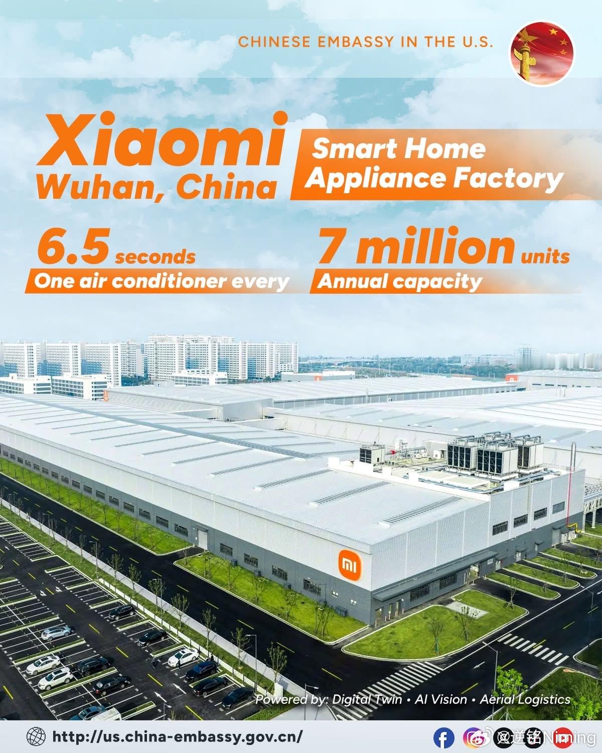 中国驻美大使馆发文点赞小米家电工厂,这算不算经过认证了[并不简单]