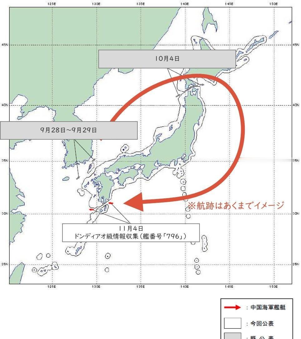 飞扬军事超话 一艘中国海军“该溜子”级电子侦察船对小日子进行了为期1个月的环岛游。 这艘该溜子舰从9月28日穿越对马海峡,10月4日穿越津轻海峡,11月4日穿越大隅海峡完成对日本列岛的环岛游。为此,日本海上自卫队出动佐伯基地分遣队所属“玄海”号多用途支援舰,佐世保海上自卫队第3导弹艇队所属“白鹰”号、北海道余市第1导弹艇队所属“熊鹰”号,以及青森县八户第2航空群所属P-3C反潜巡逻机对该溜子舰进行了跟踪监视。