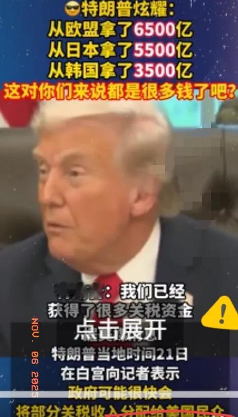 特朗普开始算账,从欧盟收割6500亿美元、日本收割5500亿美元、韩国icon收割3500亿美元、英国icon2000亿美元、中东3国3.2万亿美元,可是却从我们这吃了闭门羹,这才是他面对中国总是破防的基本原因。 特朗普的薅羊毛套路说白了就是抓软肋下狠手,欧盟靠北约、日韩被安保条约捆绑、英国脱欧后急需靠山,全被他精准拿捏,要么逼涨国防开支,要么强卖高价能源和武器。 但这套霸权逻辑在中国面前彻底失灵,因为我们从不依附谁,更不任人拿捏。他挥关税大棒,我们反制大豆猪肉打疼他的票仓;他搞技术封锁,我们自主研发突破瓶颈;他想围堵,我们就拓宽朋友圈。 特朗普的破防,本质是霸权遇上了硬骨头——中国的底气从不是妥协退让,而是自主可控的实力。你觉得特朗普后续还会用什么手段针对中国?