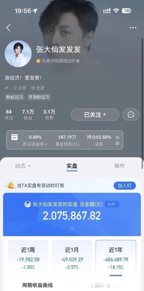 原来大仙没直播,是跨界去当理财博主了。 你小子一年不直播,跑来酷酷亏钱了,黄金这么好的行情(虽然最近跌了),怎么就只赚了1个点不到啊!第一次感觉自己的理财天赋远超大仙了。