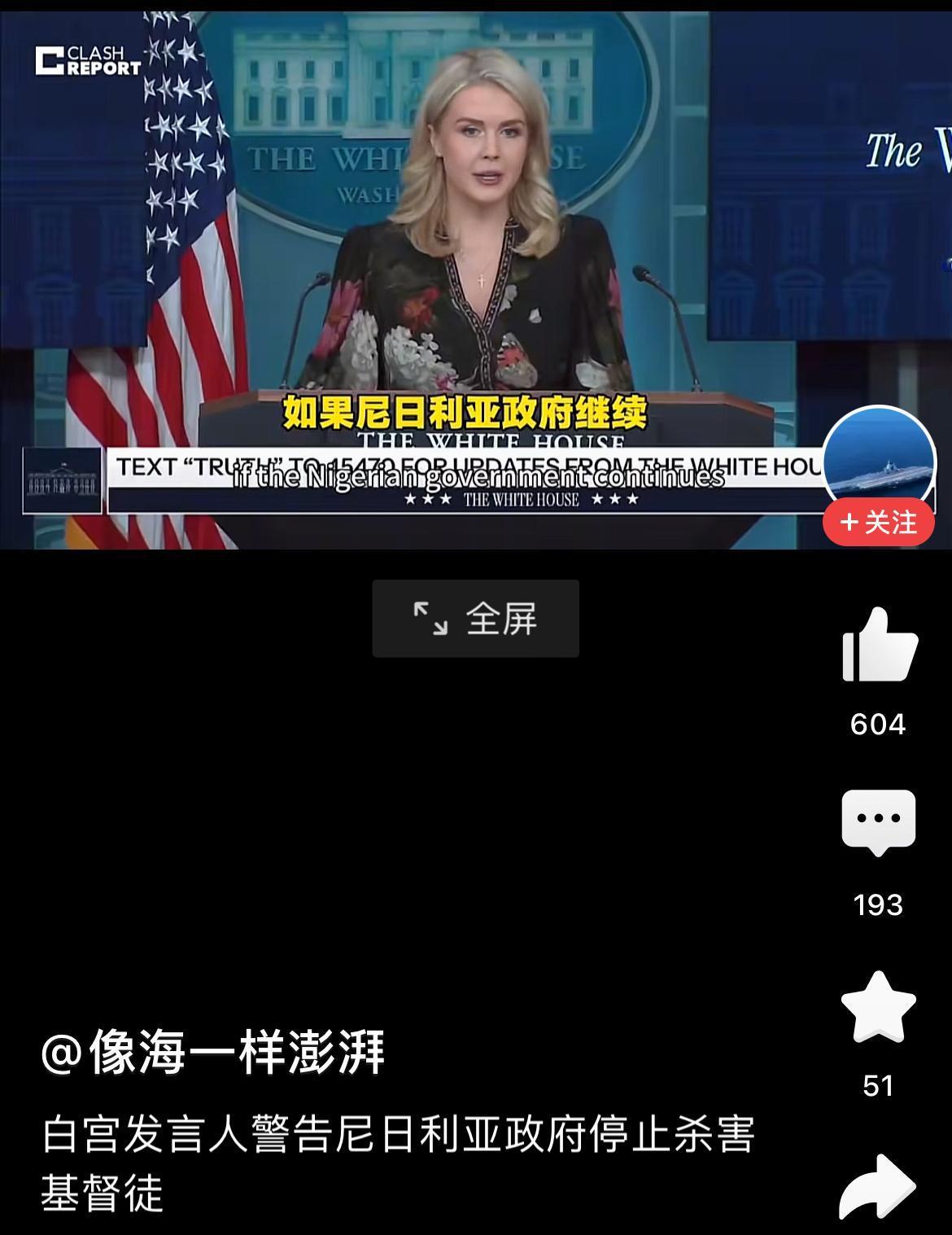 白宫美女发言人说:尼日尼亚政府如果继续允许极端分子屠杀基督教徒,美国将停止对尼日尼亚援助,并将对极端分子采取武力行动,阻止他们杀害异教徒。 美国也怪难的,尼日尼亚在非洲,美国在美洲,尼日尼亚发生的屠杀基督教徒这件事,与美国关系不大。 美国管还是不管。 美国要是武装干涉,阻止大屠杀,有的人会说这是武装干涉他国内政。 如果不管,别人又会说美国就眼睁睁的看着成千上万无辜的人被残忍的杀害,毫无作为。 有什么办法能够劝说极端分子停止对无辜的人杀害吗?
