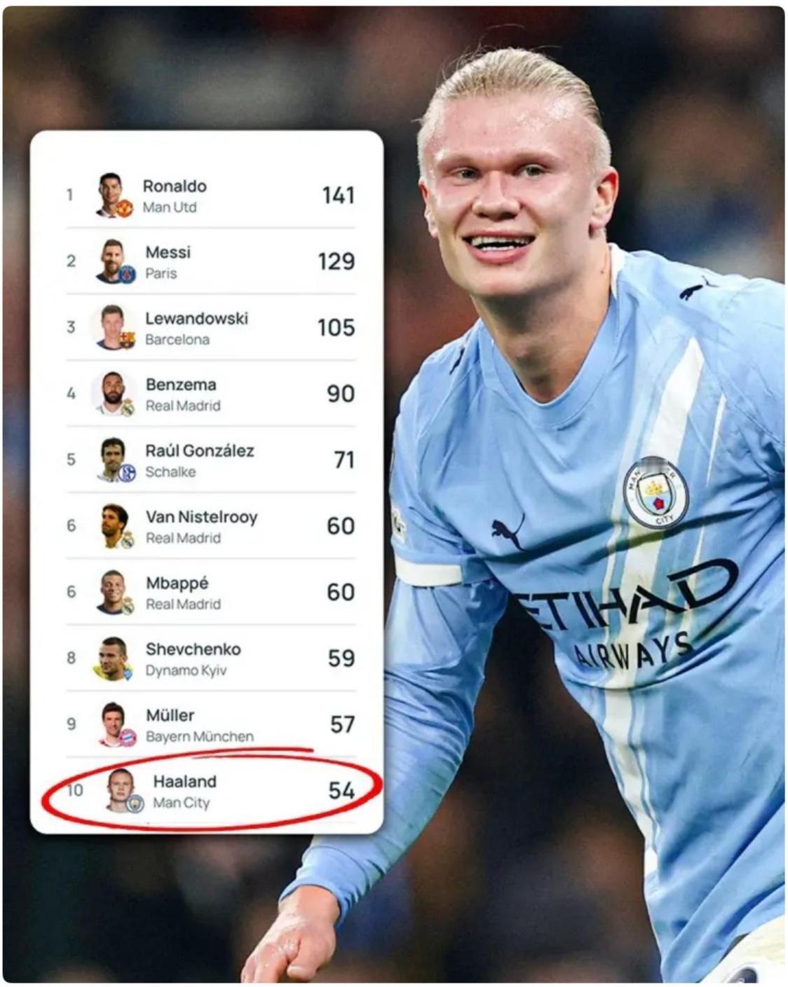哈兰德在欧冠54球,稳定十年可以超C罗! 今年25岁,再稳定五年就能比肩本泽马。 说实话超越C罗,打进150球不是梦。 反正曼城跟他续约十年,还有九年![赞]