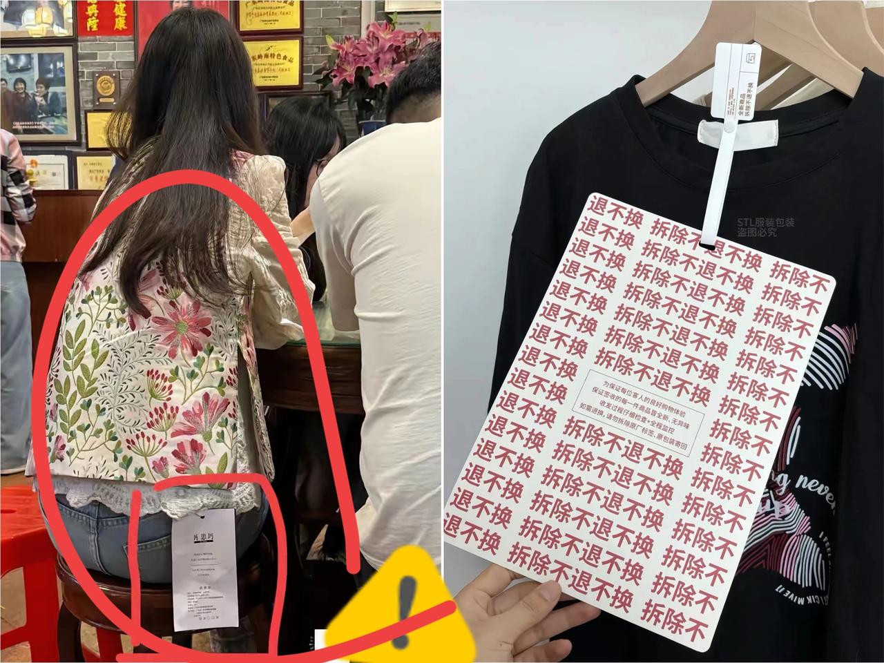 被“穿完就退”的骚操作坑惨了, 商家们的反击战也太绝了! 巴掌大的花里胡哨吊牌,明晃晃挂在衣服最显眼处, 这波“物理防退货”直接把小聪明党堵得没话说! 本是方便大家的退货政策,硬生生被少数人玩成了“免费试穿秀”,穿去拍照打卡、参加聚会,完事儿干干净净退回商家, 留下一堆“隐形二手货”。商家被逼得放大招,看似简单粗暴,实则满是无奈。 最可气的是,少数人的不诚信,最后要全体消费者买单。 退货门槛越来越高,真心想退换的人被层层限制,好好的购物体验全被搅乱了。 在我看来,这根本不是“猫鼠游戏”,而是对规则的践踏,更是对诚信的无视。 与其靠商家“整活”防退货,不如建立更完善的信用机制,让那些薅羊毛的人付出代价。 你遇到过“穿完就退”的奇葩事吗?你觉得商家这招管用网购衣服踩坑 退货衣服 吗?来评论区聊聊你的看法!