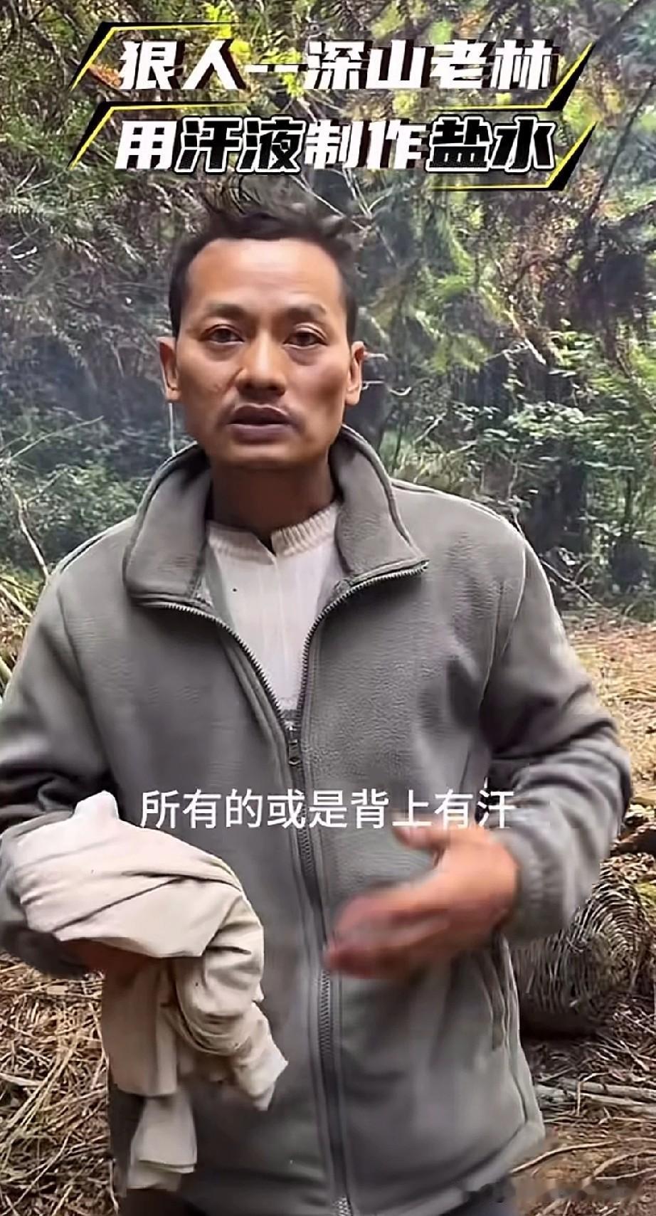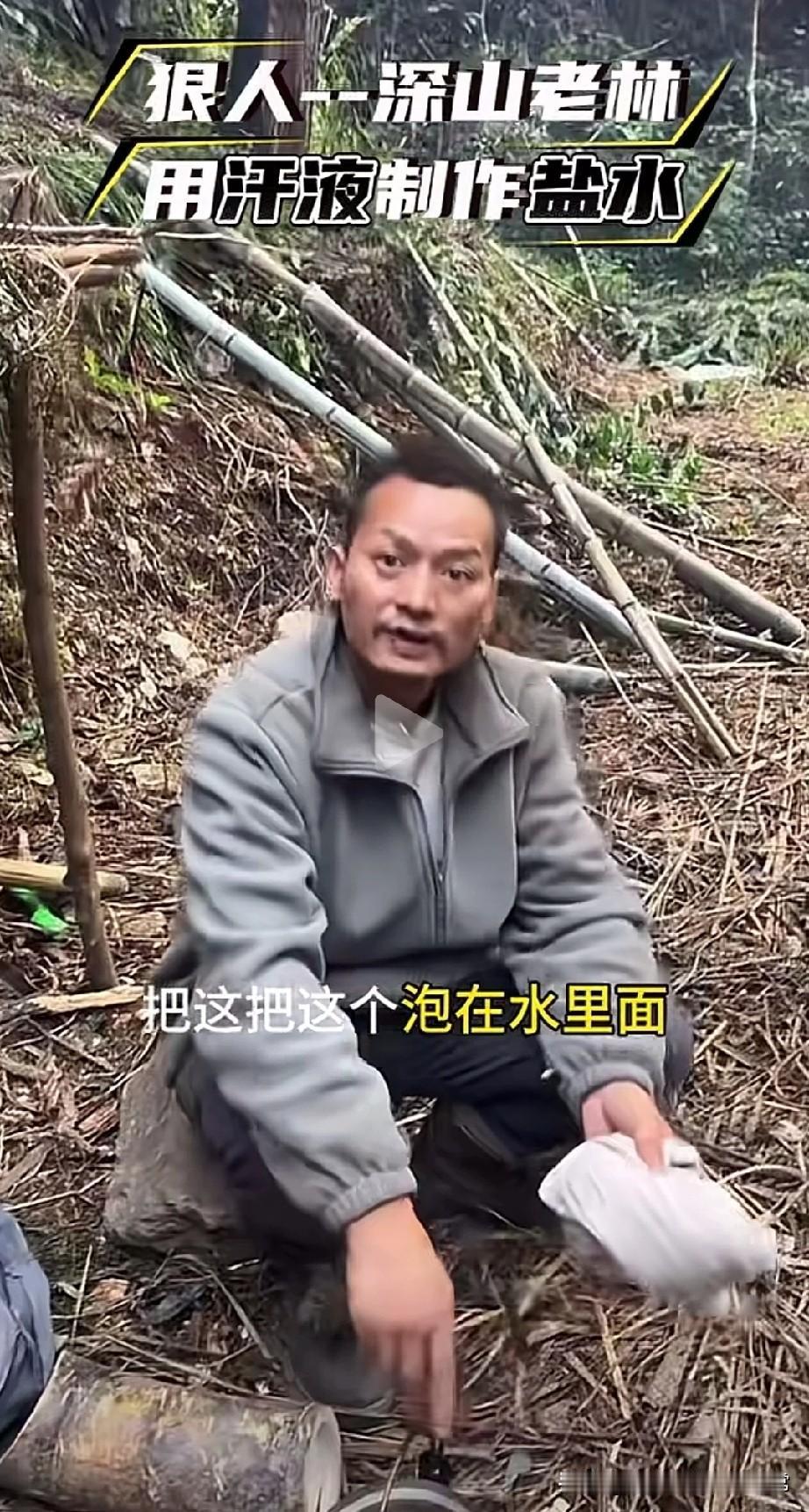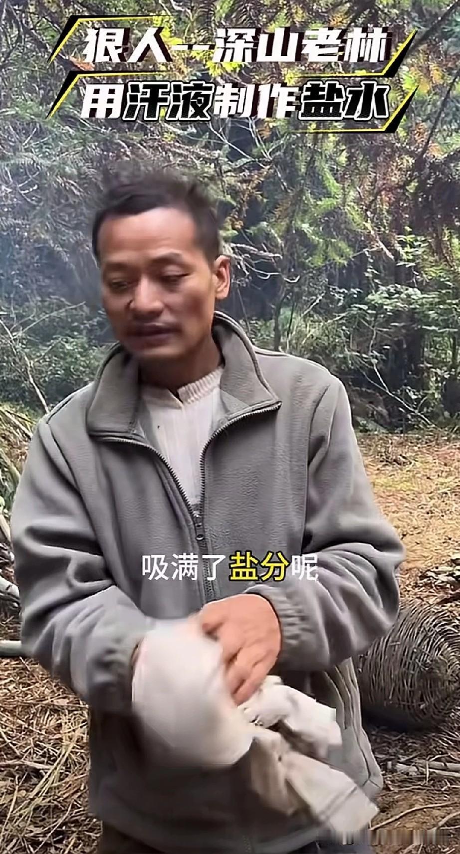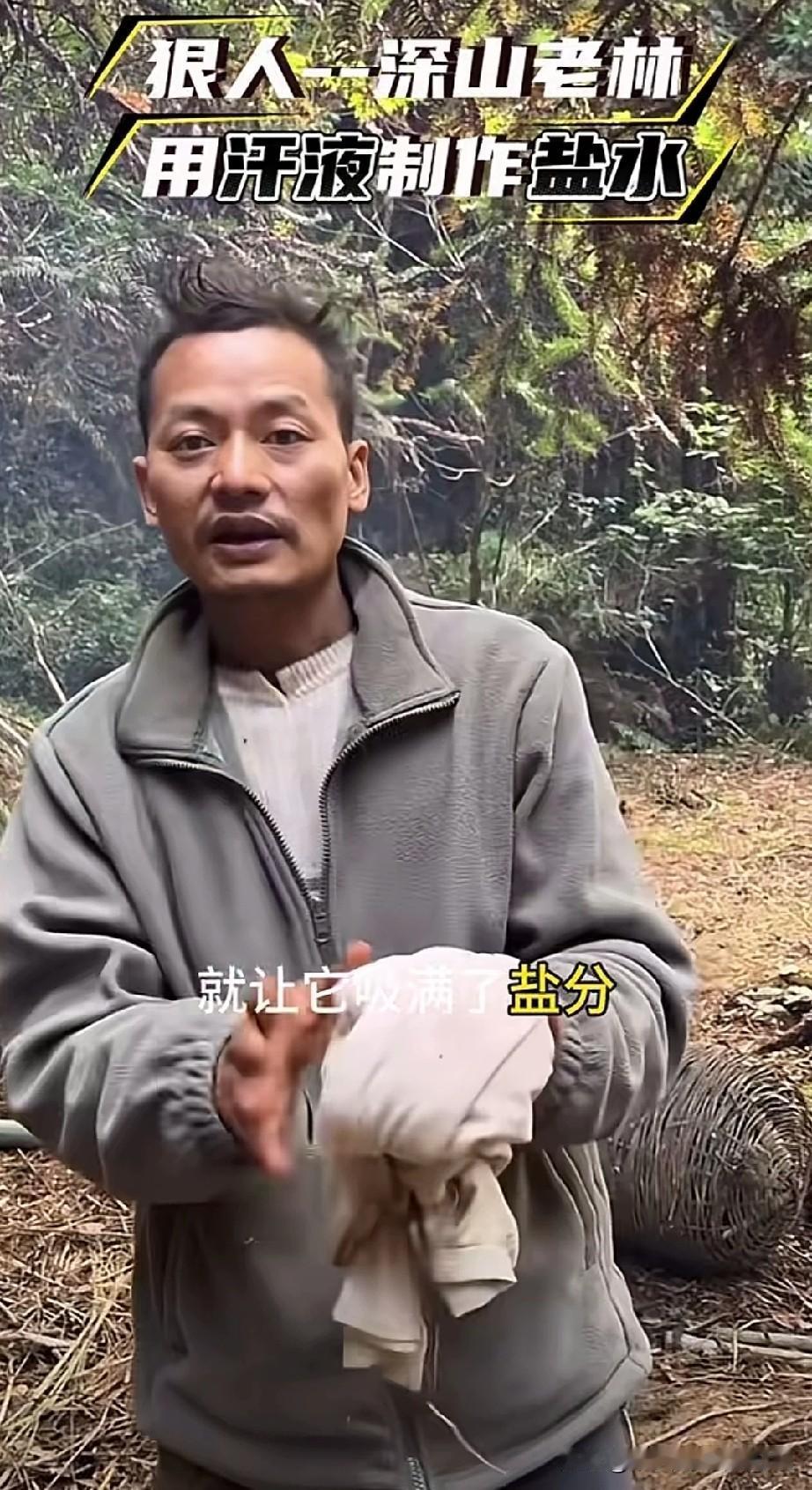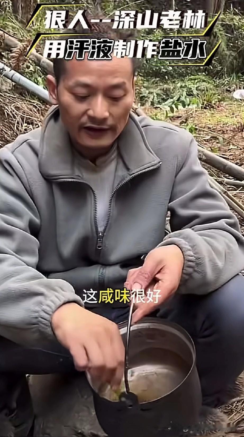 这才是狠人操作,靠出汗做盐水,尝一口还说咸味刚好 谁能想到,有人在深山老林里整出这活——用自己的汗做盐水! 这大哥先穿厚外套闷出汗,拿毛巾把脸上、后背的汗全吸满,再把浸满汗的毛巾泡进水里,熬成浓盐水。端着锅尝了一口,居然笑着说“这咸味很好”。 评论区都炸了:“这操作是把‘物尽其用’玩到极致了”“隔着屏幕都觉得味儿冲”。但也有人说,这是真·野外生存狠活,毕竟汗液里确实有盐分。 不过我是真懵了:这波操作到底是“硬核生存”还是“大可不必”?要是你在野外没盐了,真能下得去嘴吗?