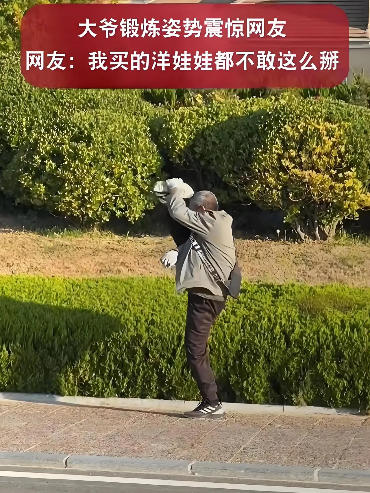 大爷锻炼姿势震惊网友 网友:我买的洋娃娃都不敢这么掰![捂脸]