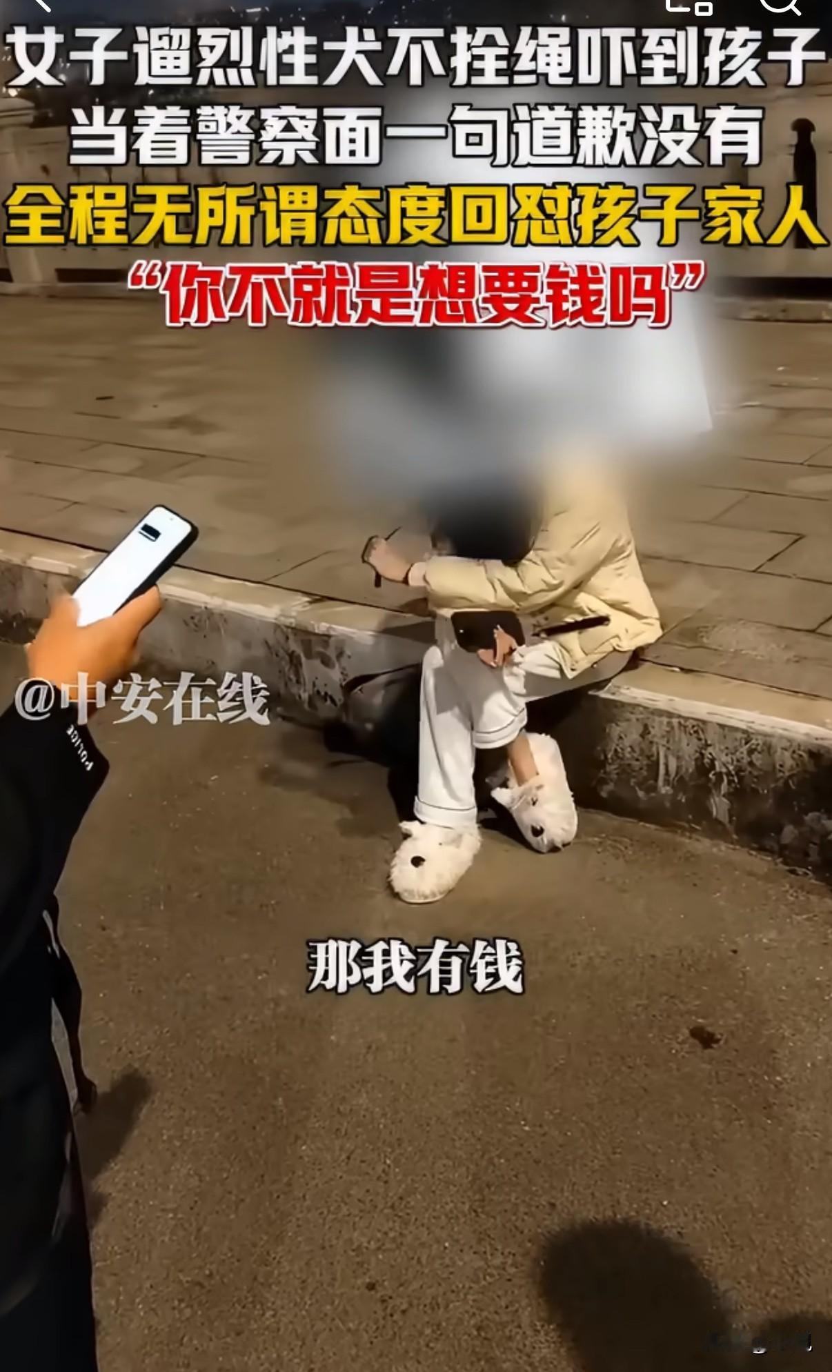 “太嚣张了”!三岁小女孩在前面跑得正欢,一条大狗突然冲过来对着她汪汪叫。孩子当场吓懵,哇一声哭出来。 家长赶紧抱起孩子,脸都吓白了。 遛狗的年轻女子这才提着绳子慢悠悠过来,非但没道歉,还轻飘飘说了句:“不是没咬到吗?” 最让人无语的是,她后来对警察也那个态度:“不就是要钱吗?我有钱。” 那句话一出来,周围看的人都摇头。