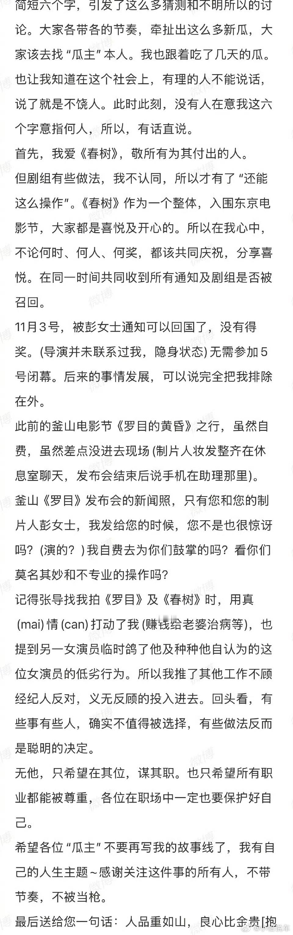 白百何回应“还能这么操作”白百何回应来了,事情写的很清楚,没说这个是内涵王传君,是对职场不公写的吐槽,最后希望这件事能过去,不要再带节奏了