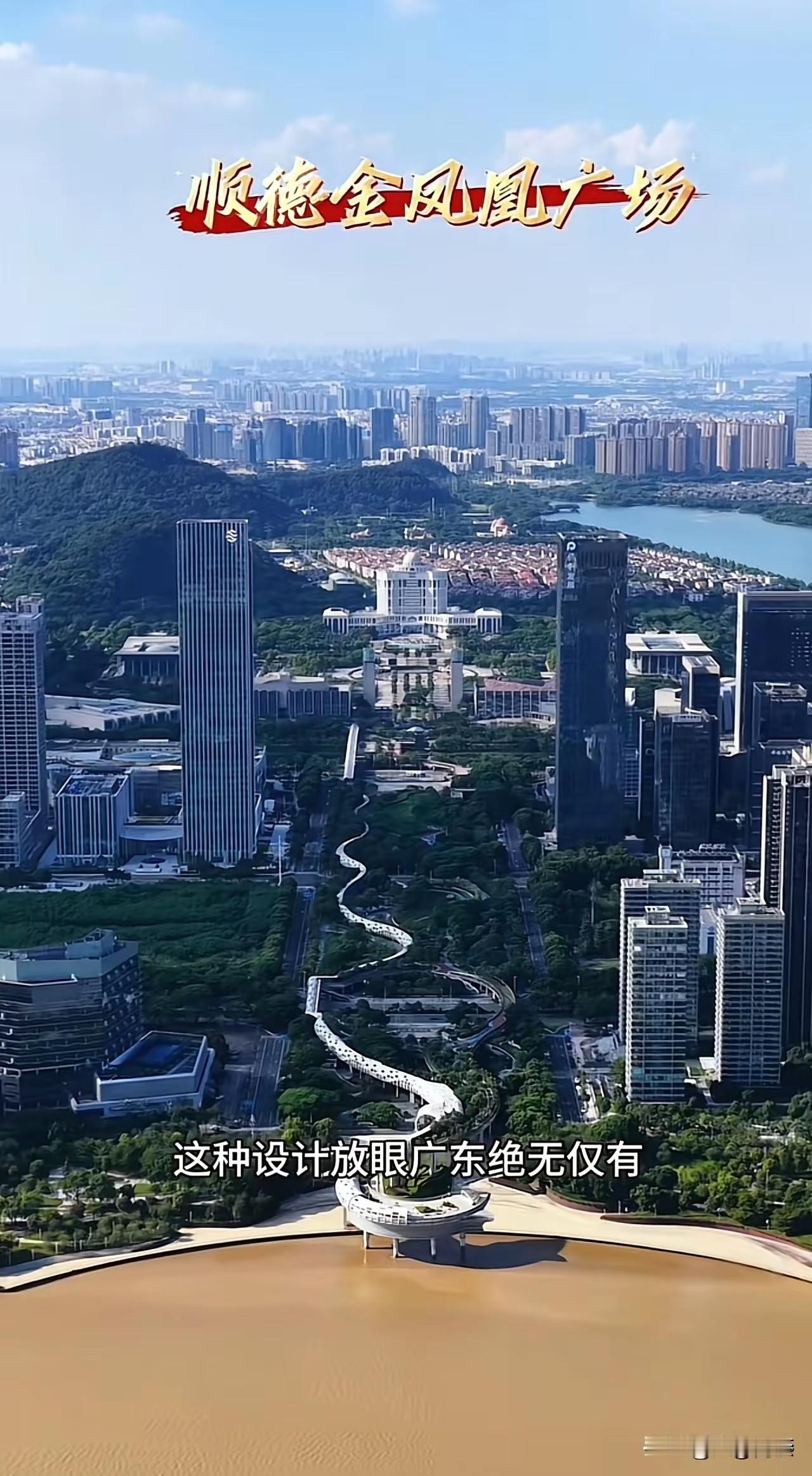从顺德的这个金凤凰广场看,还是有懂行得人的。两塔一走廊,前面有水背后还有个小山头坐镇。十分经典。 不像我们,搞了个大门向南边,北边又没靠山。最后没办法,又把门开到东面。周边还搞了好几个湖。 不过顺德这个还是有个不足的,就是两座高楼一样高了,完美一点的应该一高一低才对。就像广州西塔和东塔,也是一高一低。