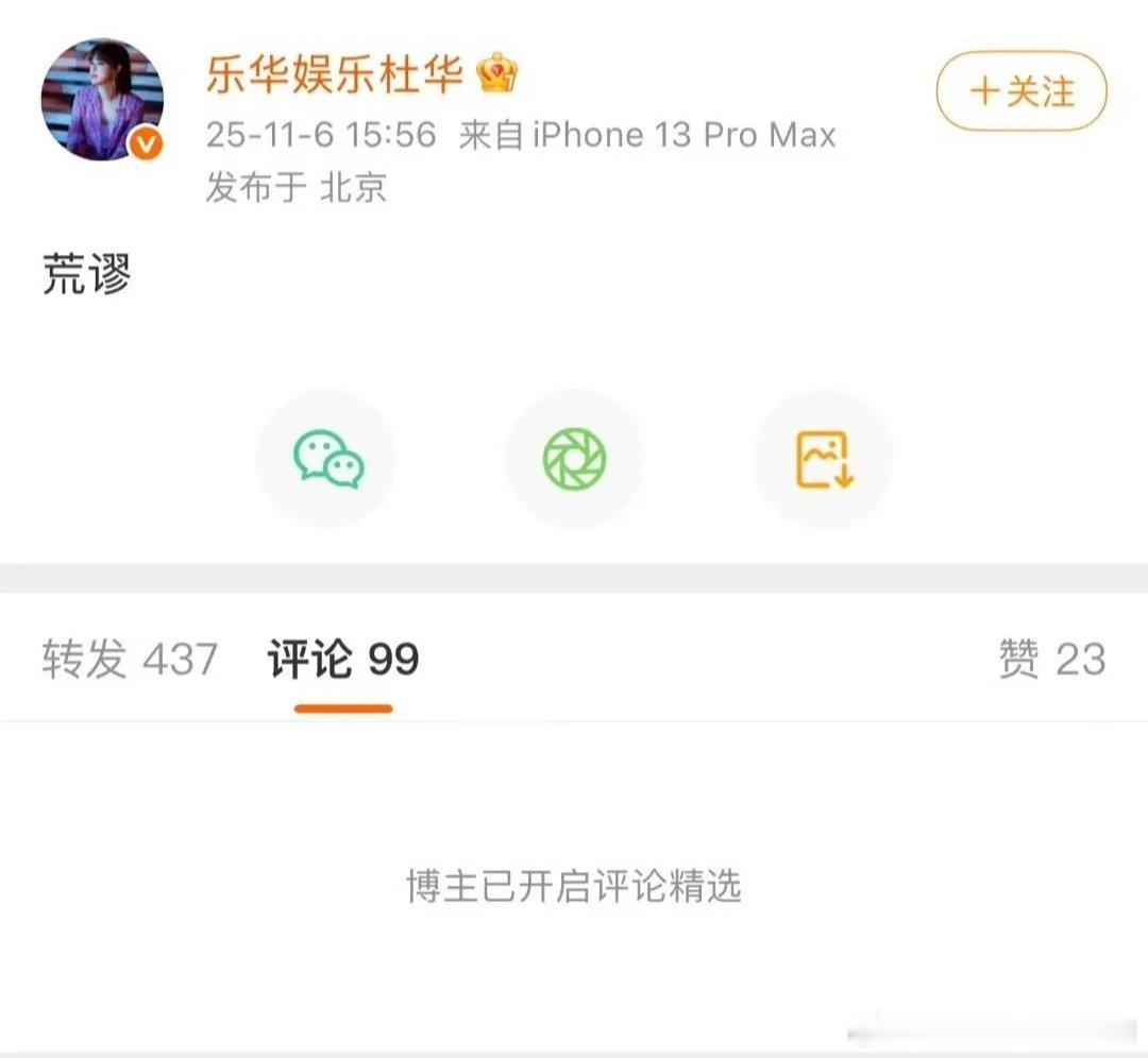 但有意思的是,杜华的评论区开了精选,没人能看到大家在说什么。
