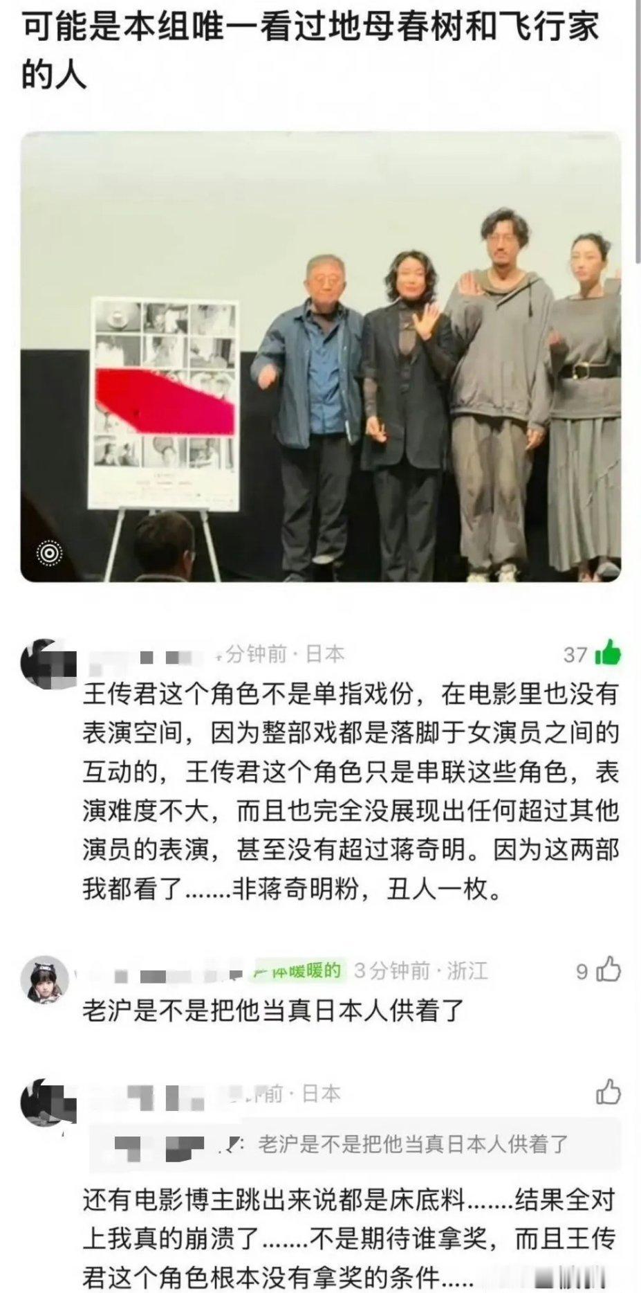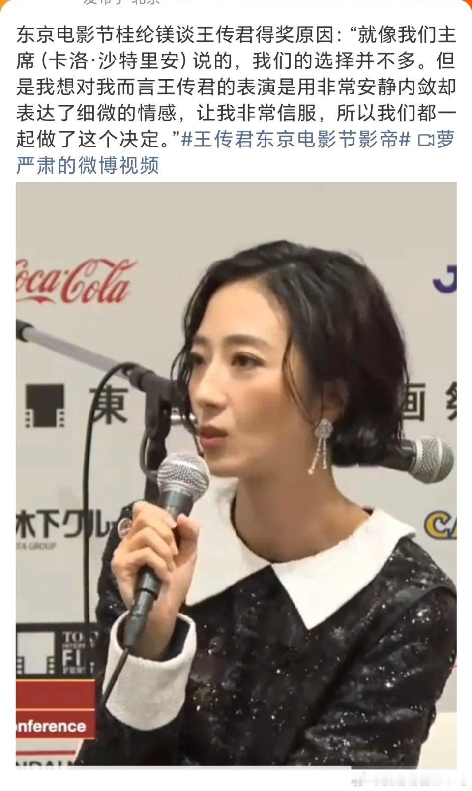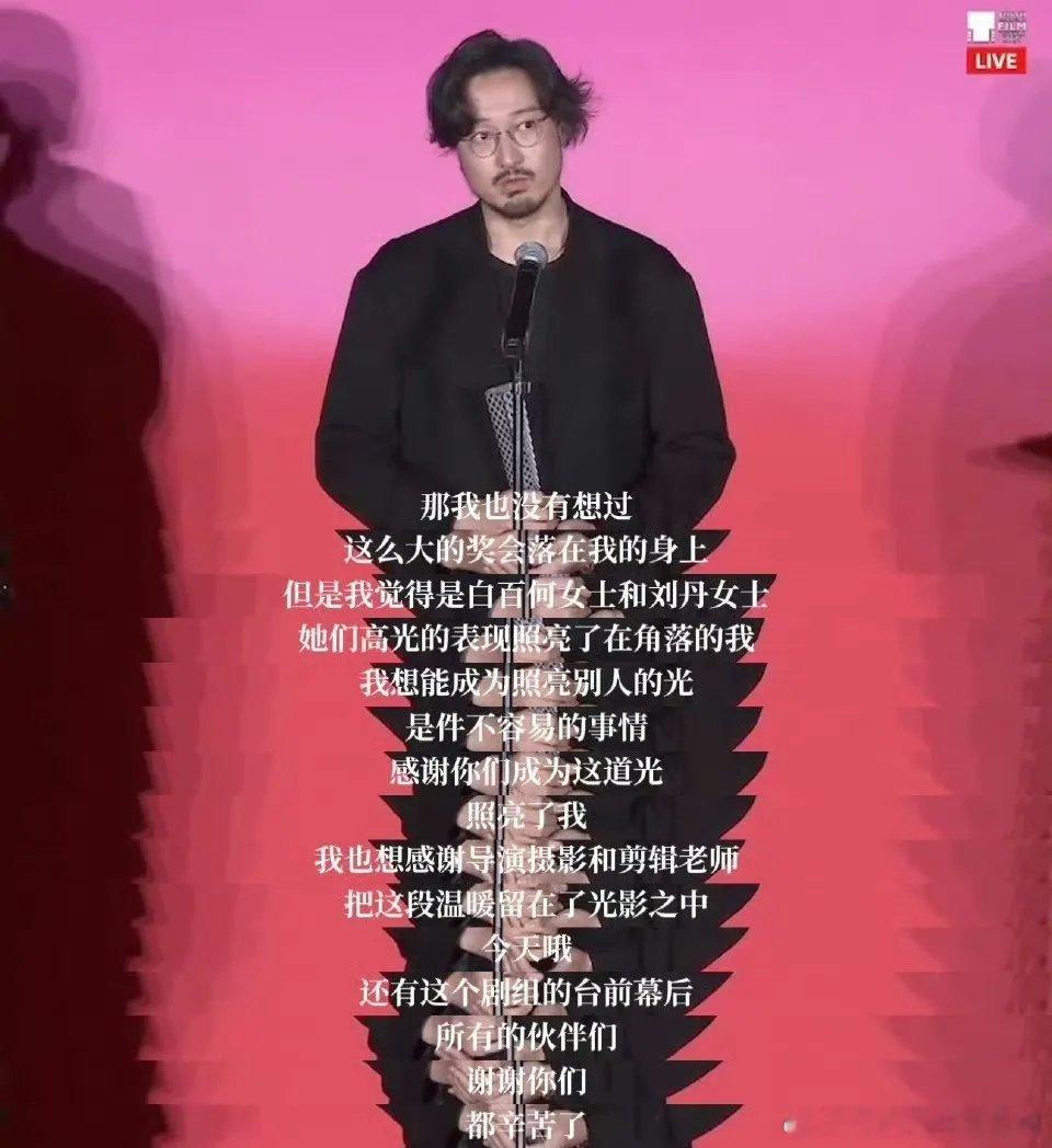 网友曝瓜说有后台录音,影片女配刘丹已经出来恭喜他,桂纶镁也说了他获奖的原因“表演是用非常安静内敛却表达了细微的情感,让我非常信服”