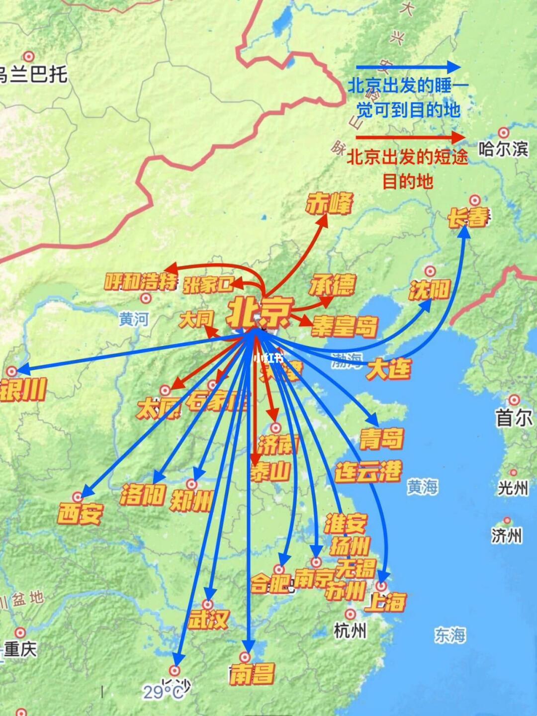 除了睡一觉即可到达的旅行城市外,博主也帮大家总结了北京出发的短途目的地: