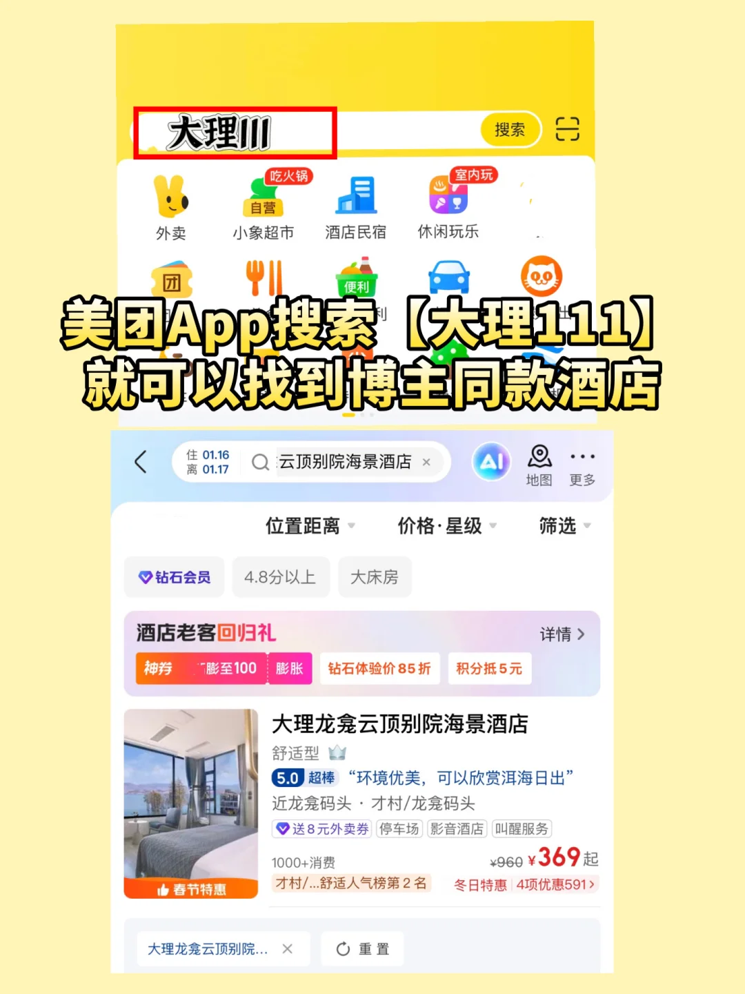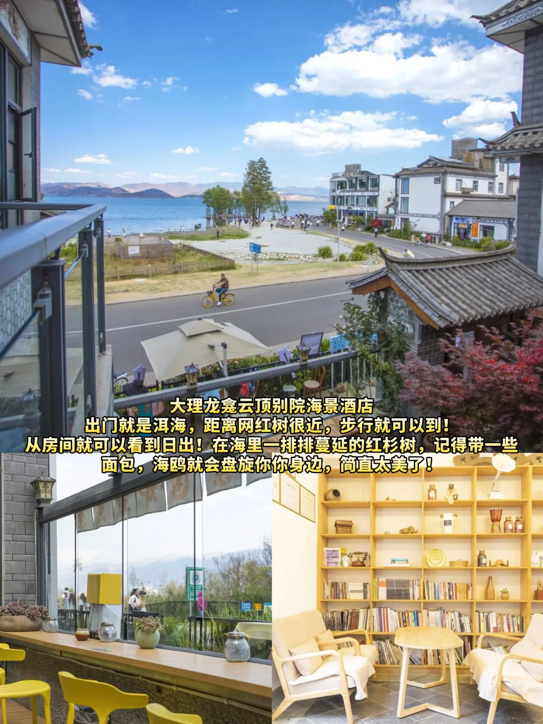 个人比较推荐住在龙龛古渡附近,靠近洱海,早上看日出也很方便!博主住过一家性价比不错的民宿就在这里——大理龙龛云顶别院海景酒店