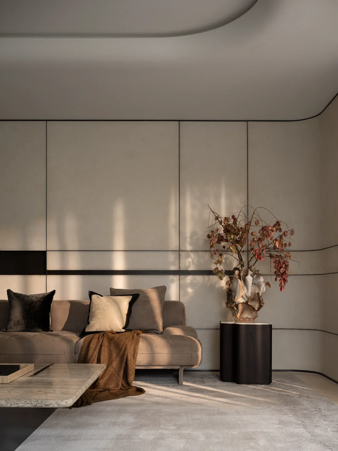 ⬛ 松苑,由世界建筑大师马岩松为其冠以灵芝之形、云朵阳台、垂直森林,打造颠覆塔尖人居构想的“山水城市”,以生态自然与当代美学互为交织,造就隐逸与奢华共存的藏品级豪邸。 ⬛ 太合南方设计担纲底层跃墅户型的软装设计,整体室内分为地上一层、地下负层及夹层,延续项目建筑理念,以精神至上的生活意趣对抗传统豪奢主义,于空间中极尽软饰、器物和自然景致回归本真,营造与功能空间契合的雅致之境。 ⬛ 古典不失当代审美、简约并非随意平庸、沉稳中见舒怀广阔,最是合乎当今生活之所想、心之所向。 ⬛ 项目:松苑790㎡跃墅 公司:摄影:陈建忠 空间设计 室内设计 设计案例分享 样板房设计 住宅设计 豪宅设计 松苑 第四代住宅 别墅设计 家居美学