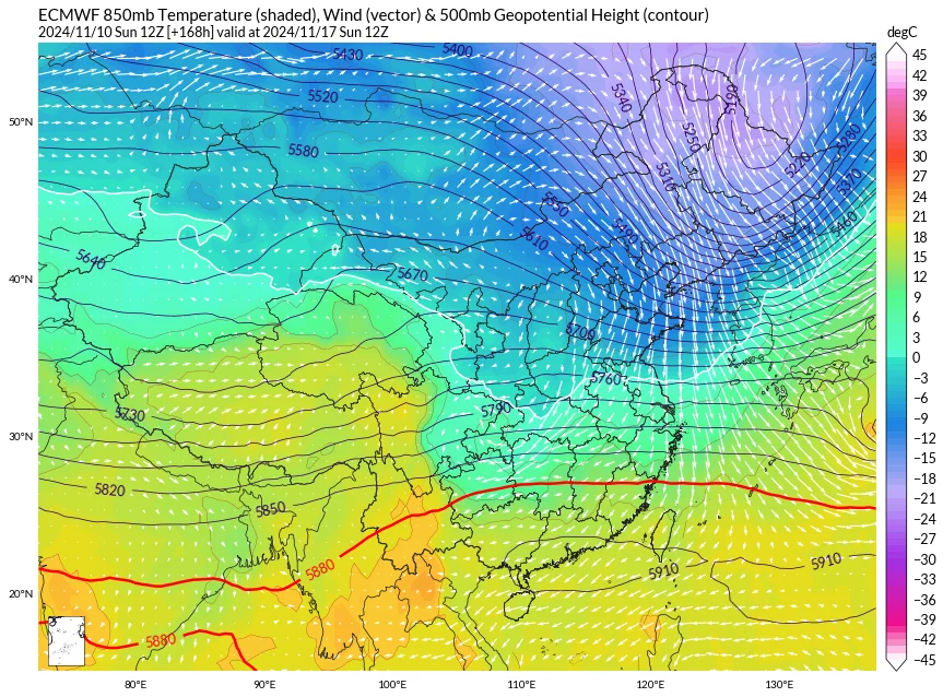 虽然时间已经进入11月中旬,但是目前山东大部地区最高气温仍高达20℃,气温距往年同期显著偏高。但是这种天气形势将会逐渐转变,根据最新的气象资料分析,13~14日我省会自西向东出现一轮弱降雨过程,虽然降雨强度并不大,但是阴雨持续时间长,体感温度会比较湿冷。