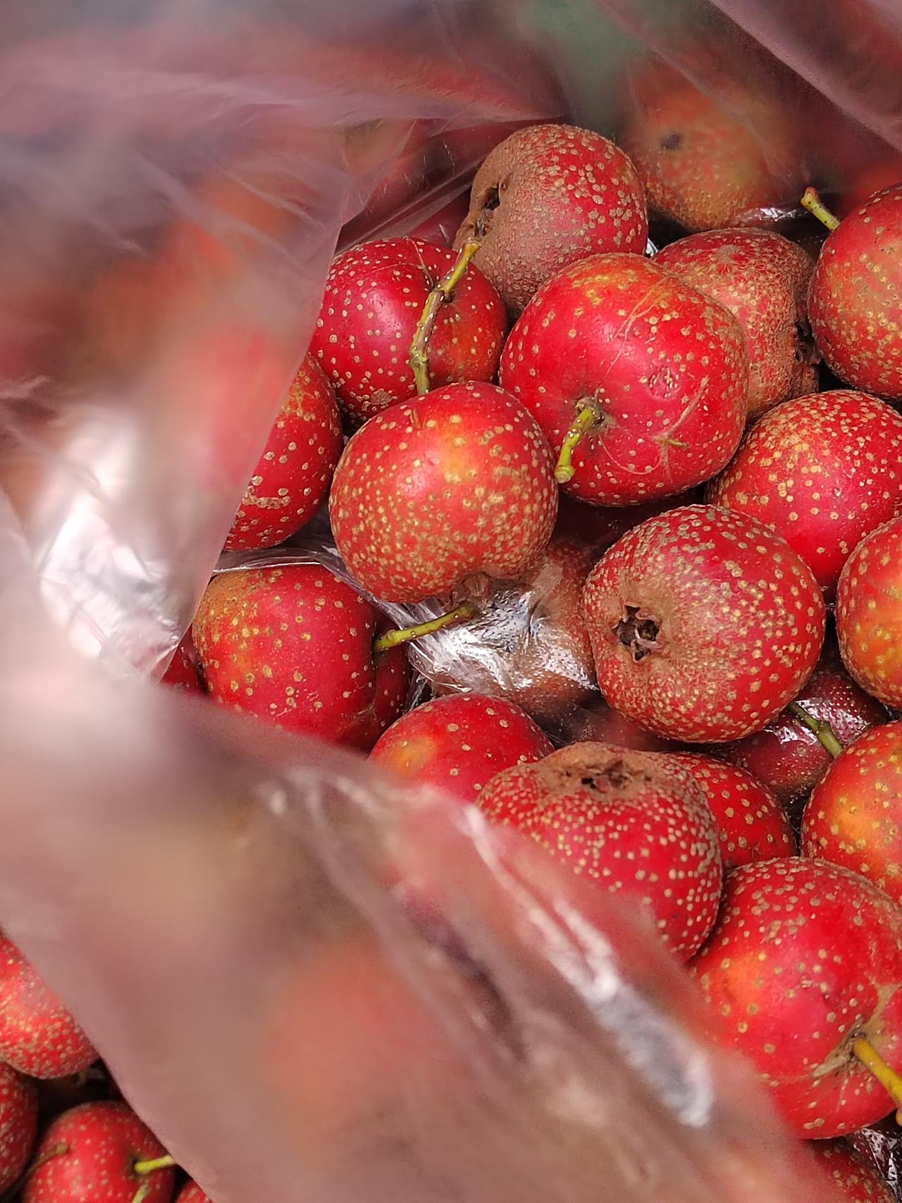 昨天下午到银行办完了业务,顺便到菜市场去遛了一圈,买了青椒、西红柿、山药、香菜、苹果。 看见旁边一个大哥在卖酸楂,个头挺大的,就买了点。 我边挑捡边问他,你的酸楂怎么个头这么大? 大哥很实在,说是喂的化肥多。 我又问他,打农药吗? 他说,不打药就让虫子给吃了了。 所以说,卖相好看的东西还是尽量少吃点好。