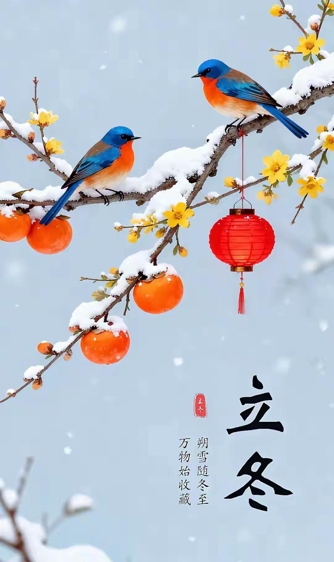 倏忽秋又尽,今朝恰立冬。秋收冬藏,静待春光。愿你我冬来有暖,心无寒扰,家庭和睦,幸福安康,诸事顺遂,心想事成,岁岁平安,所行皆坦途,所求皆如愿!