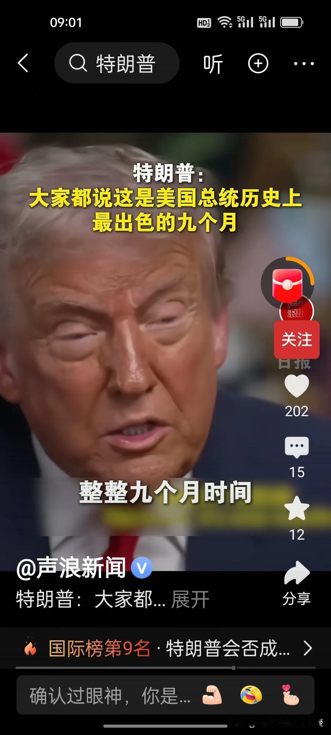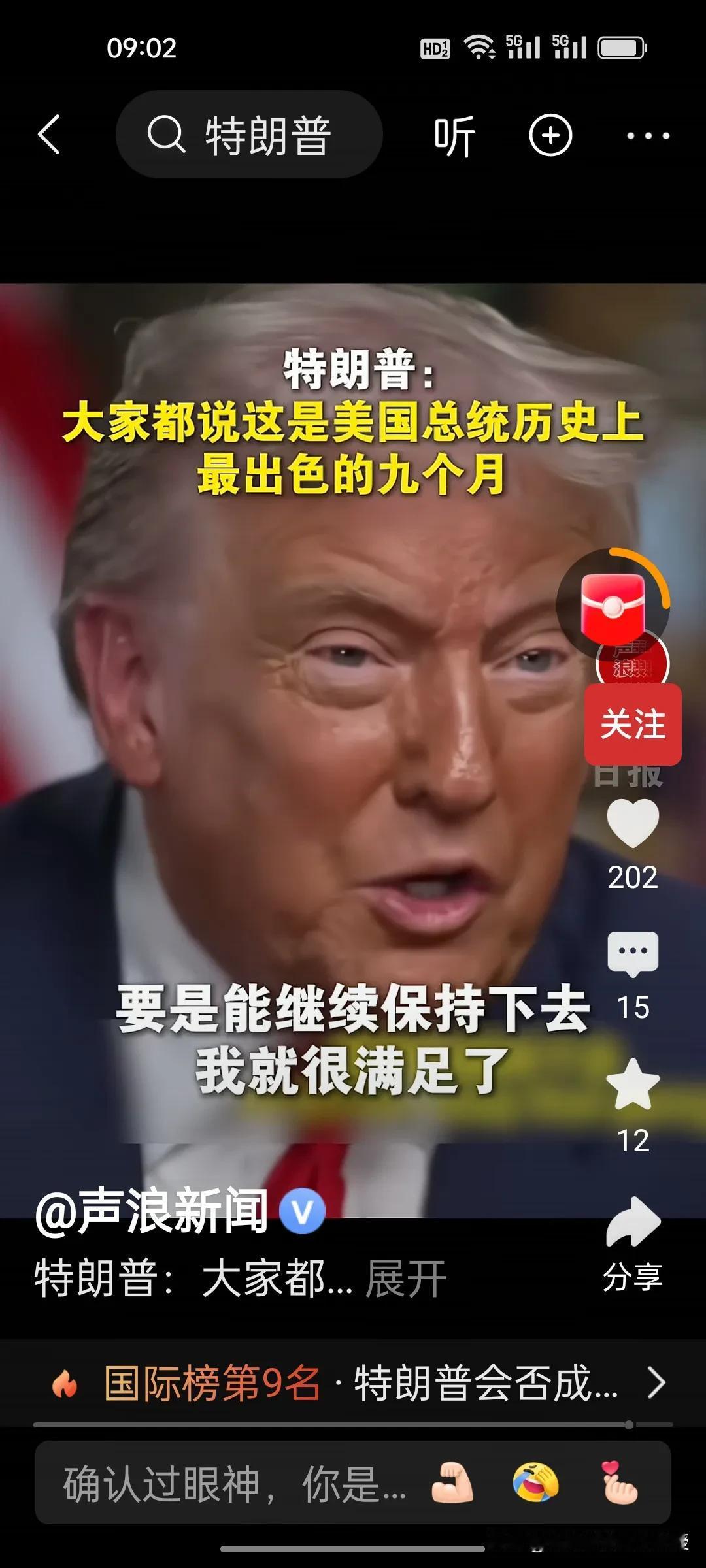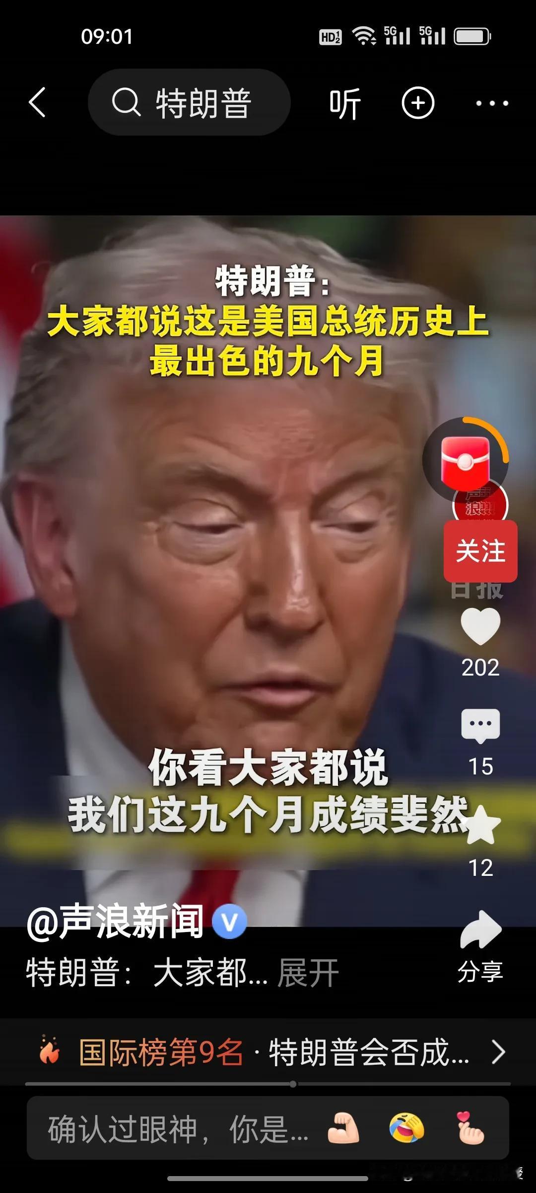 特朗普近期说:大家都说这是美国总统历史上最出色的九个月。 特朗普口中的“大家”,应该就是指的他周围的万斯,海格塞斯,鲁比奥,莱维特等为数不多的核心成员。可不包括前段时间700万上街抗议特朗普的美国人民,也不包括美国政府创纪录停摆领救济的4200万人,更不包括加州州长纽森和纽约90后印度穆斯林后裔新市长马姆达尼。