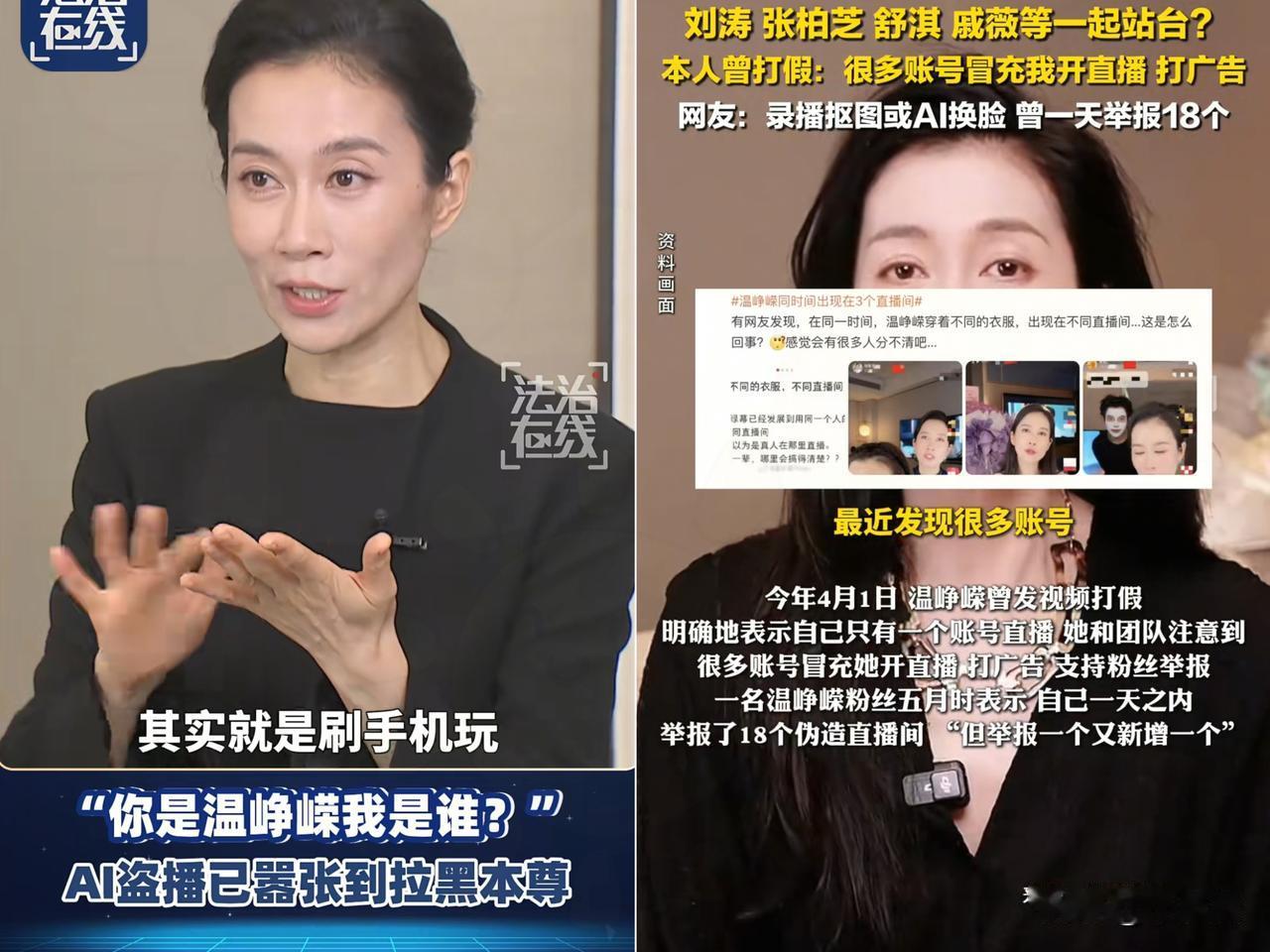 温峥嵘上热搜, 这一次不是宣传新作品, 也不是参加综艺活动,而是被冒充了, 半夜拍完戏刷到自己直播带货,质问“你是温峥嵘我是谁”反被拉黑,这荒诞剧情真不是段子! AI换脸让温峥嵘同时“分身”十几个直播间,穿不同衣服卖不同货,逼真到粉丝都难辨真假。 更离谱的是,团队一天举报50个假号仍防不胜防,商家用简易工具就能合成虚假内容,维权取证却难如登天。AI本是便利生活的科技,不该沦为侵权敛财的工具,“AI生成未标注”的乱象早该被重拳整治。 法律早有规定AI换脸侵权要担责,但光有法条不够,平台的审核义务、技术的标识要求必须落地。 当明星都要证明“我是我”,普通人的肖像权又该如何安放? 科技向善从不是口号,而是让作恶者付出代价的硬约束。 你在直播间遇见过疑似AI合成的主播吗? 来评论区说说你的鉴别小技巧!