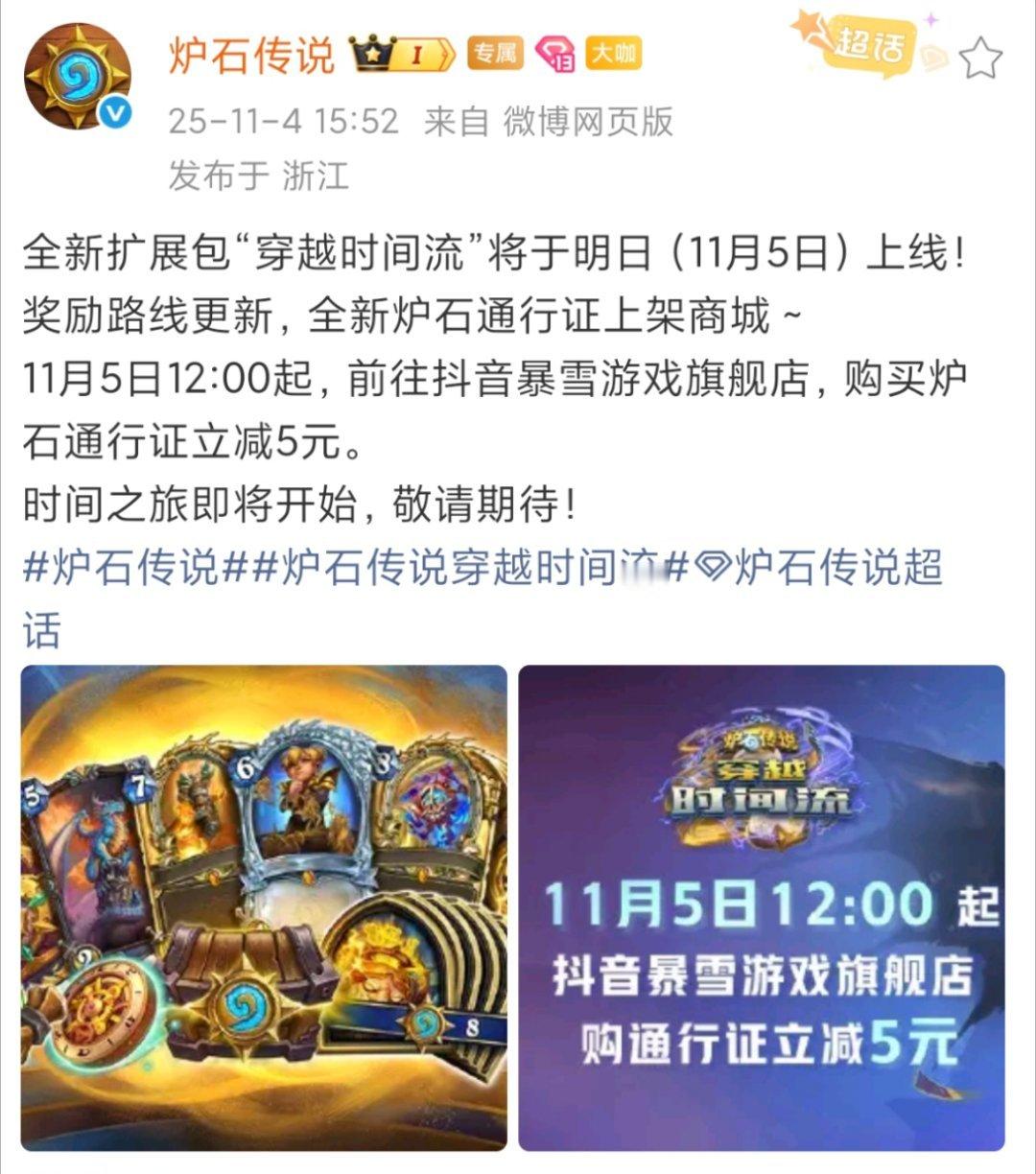 炉石传说 怪不得好多人说抖音看不到通行证-5块,原来是限量的,宣发时也没说限量[笑cry]