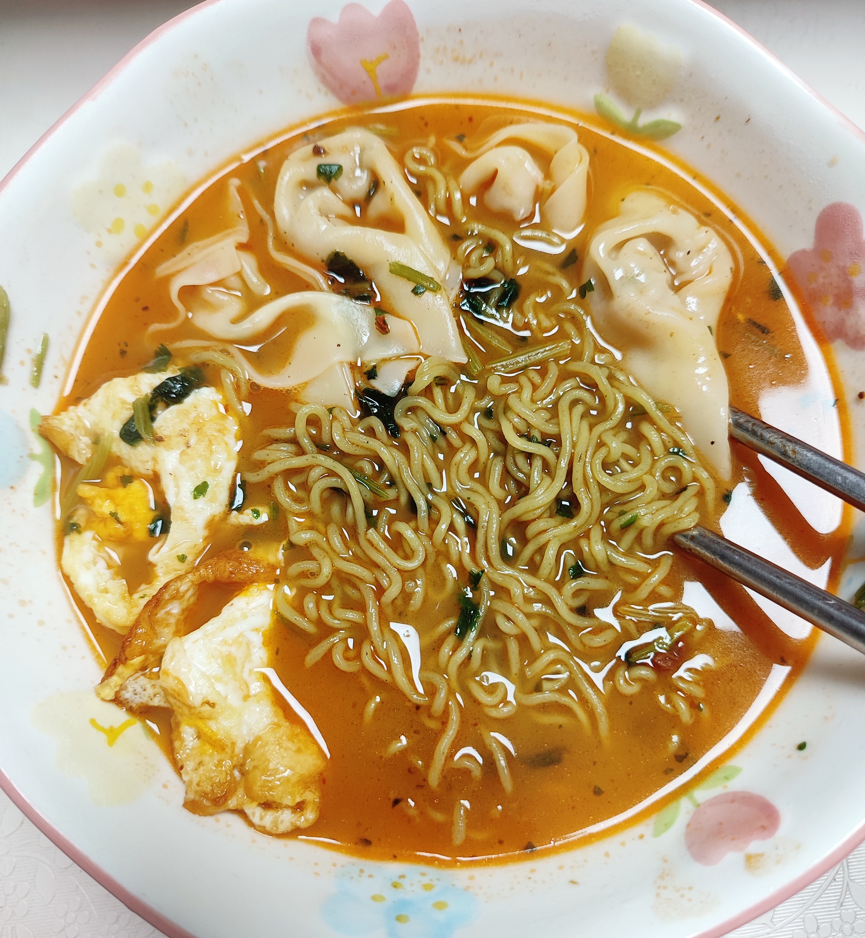 香菜面煮着吃真的巨香!!!再加个煎蛋和几个抄手,更完美了🤤