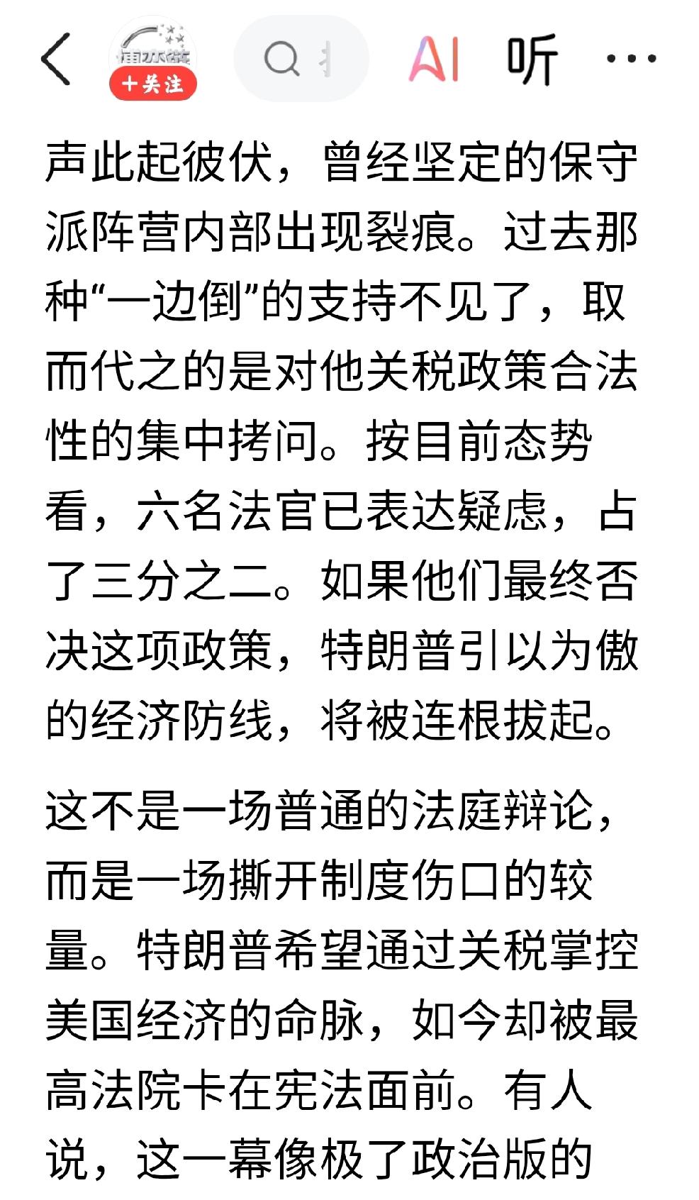 民主党主动出击:美最高法 个人观点:全球瞩目的美国最高法院,关于特朗普“关税政策”的是否合法?大概率预判结果出来了 —“非法”。 特朗普政府的反击是国家绑架。如果非法,那么美国不得不退还7500亿美元的关税收入,这足以令美国崩溃,这是特朗普政府的威胁,绑架。 民主党,到了准备武器的时刻,因为子弹准备好了。