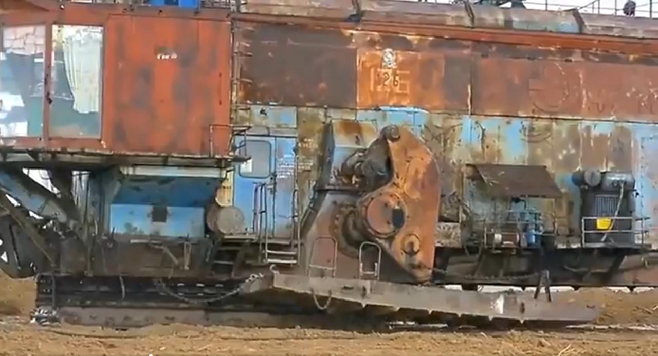 ЭШ6,5/45型苏联1979年生产的步行式挖掘机的视频。这台挖掘机重达280