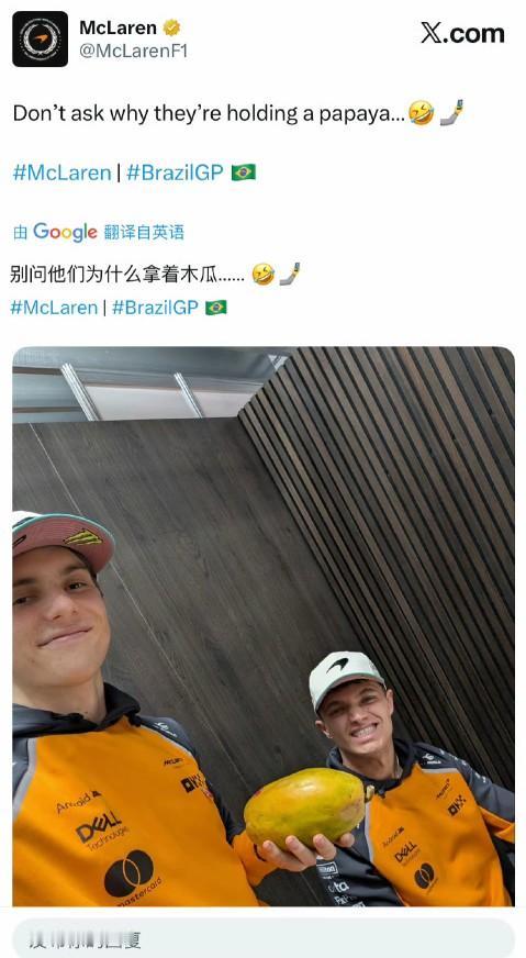迈凯伦看来要把木瓜规则贯彻到底,这是真的上木瓜了。都到这个阶段了还装和谐,内斗起来才是正事。 迈凯伦打算在巴西用的木瓜规则,真是玩得心跳,效果咋样咱们赛后见,但这份胆量,F1圈里算是独一份了。