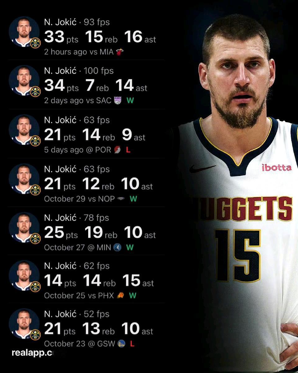 约老师过去七场比赛拿了5次三双。约老师太强了,只要想拿三双随时能拿。