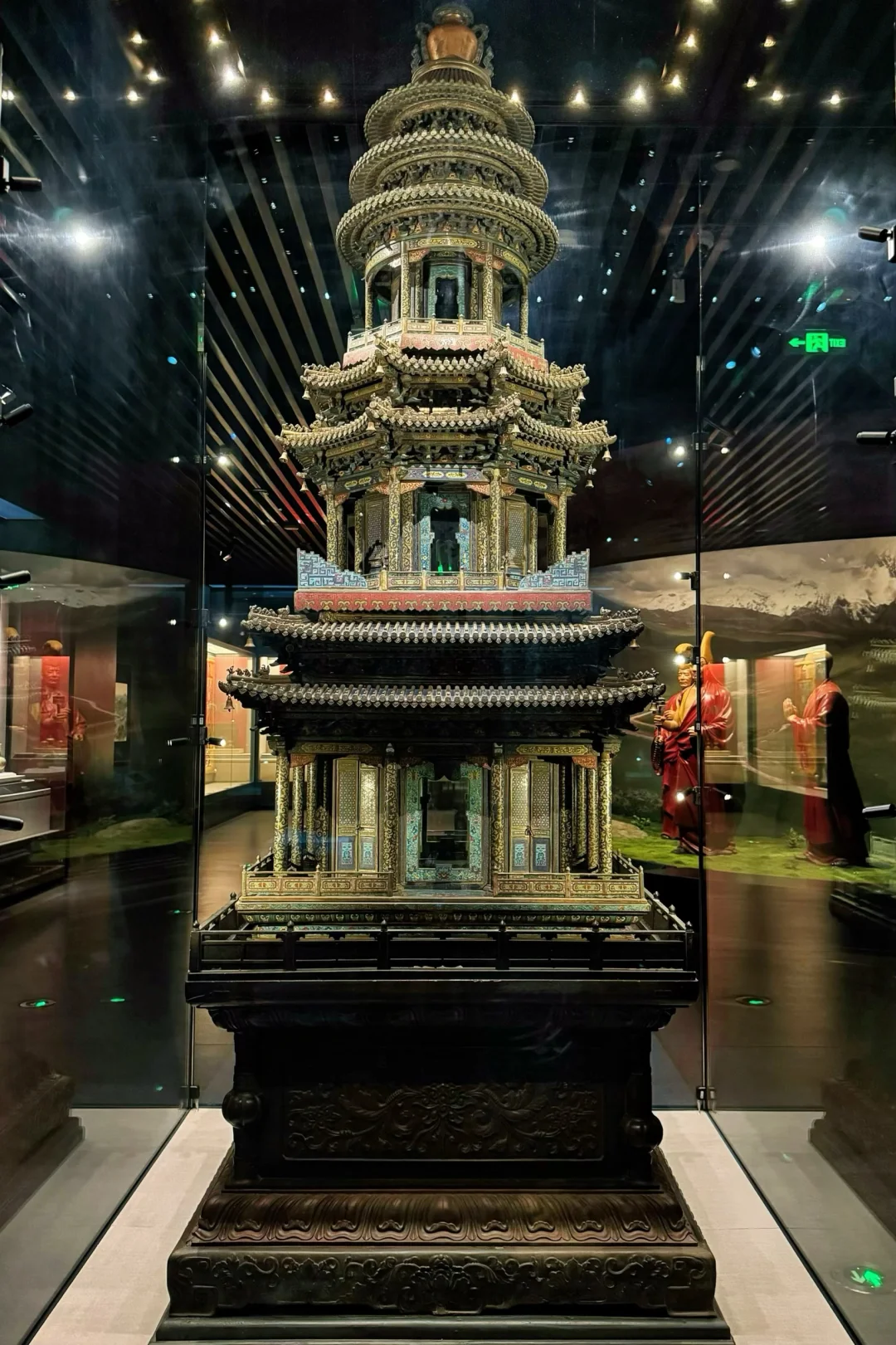 镇馆之宝:紫檀木座铜胎珐琅塔
