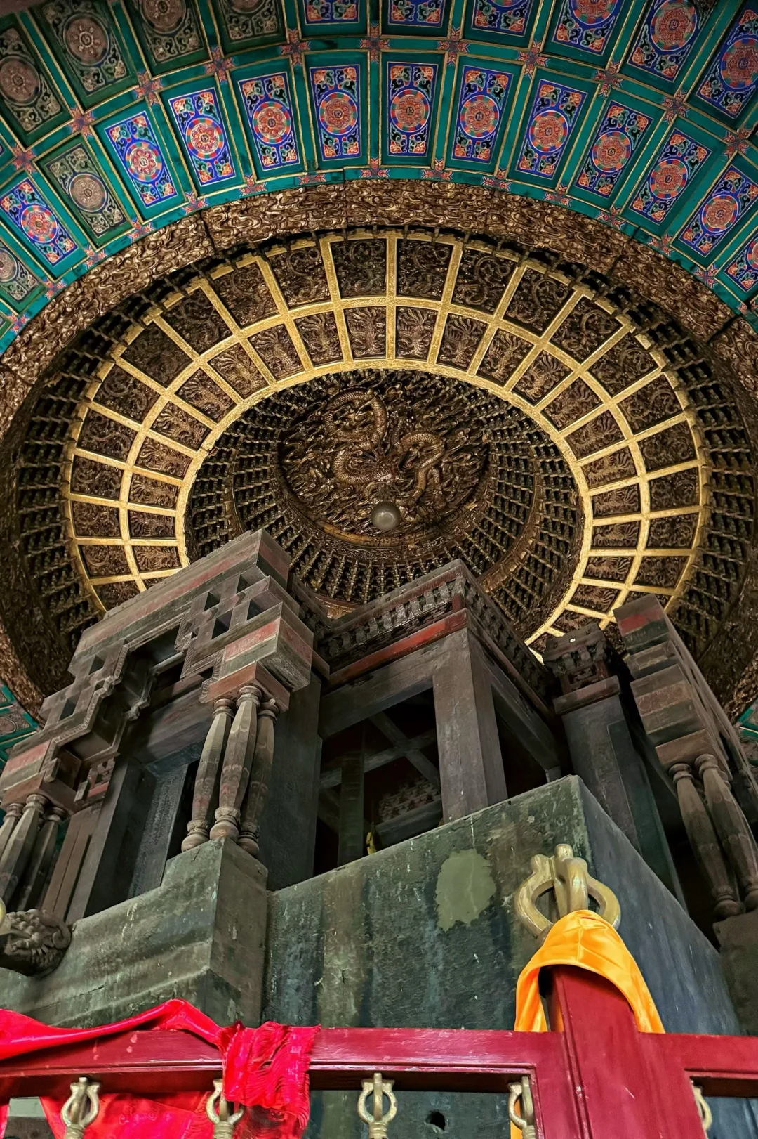 旭光阁很像北京天坛的祈年殿,阁内的藻井很美,值得一看
