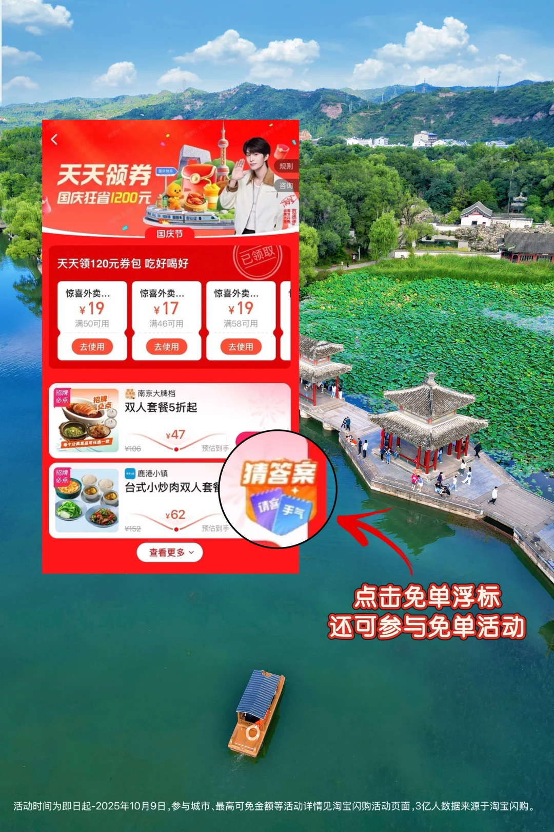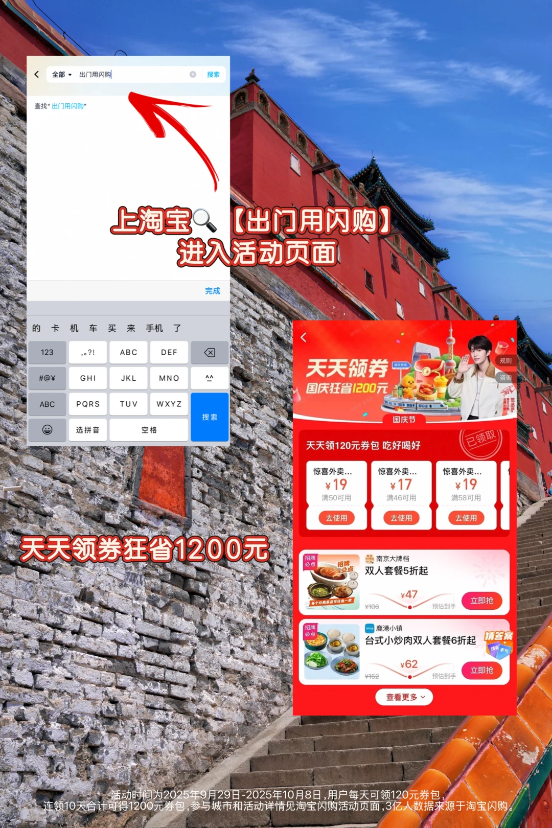 结束一天的旅行行程,回到酒店时又累又懒得出门,又想吃当地美食特产,直接上淘宝搜【出门用闪购】点外卖,不用出门又能省去很多排队时间,还有像旅行没带齐的护肤品、生活用品等上淘宝闪购都能搞定,省心又优惠~不得不说旅行出门用淘宝闪购真的太方便啦,现在每天还能抢免单并领120元券包,长假下来最多能省1200元,这波羊毛薅住啦,国庆假期可以放肆吃喝了~