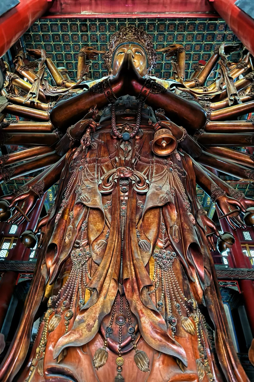 汉藏结合的寺庙,大乘之阁内有世界醉高的木雕千手观音,很壮观