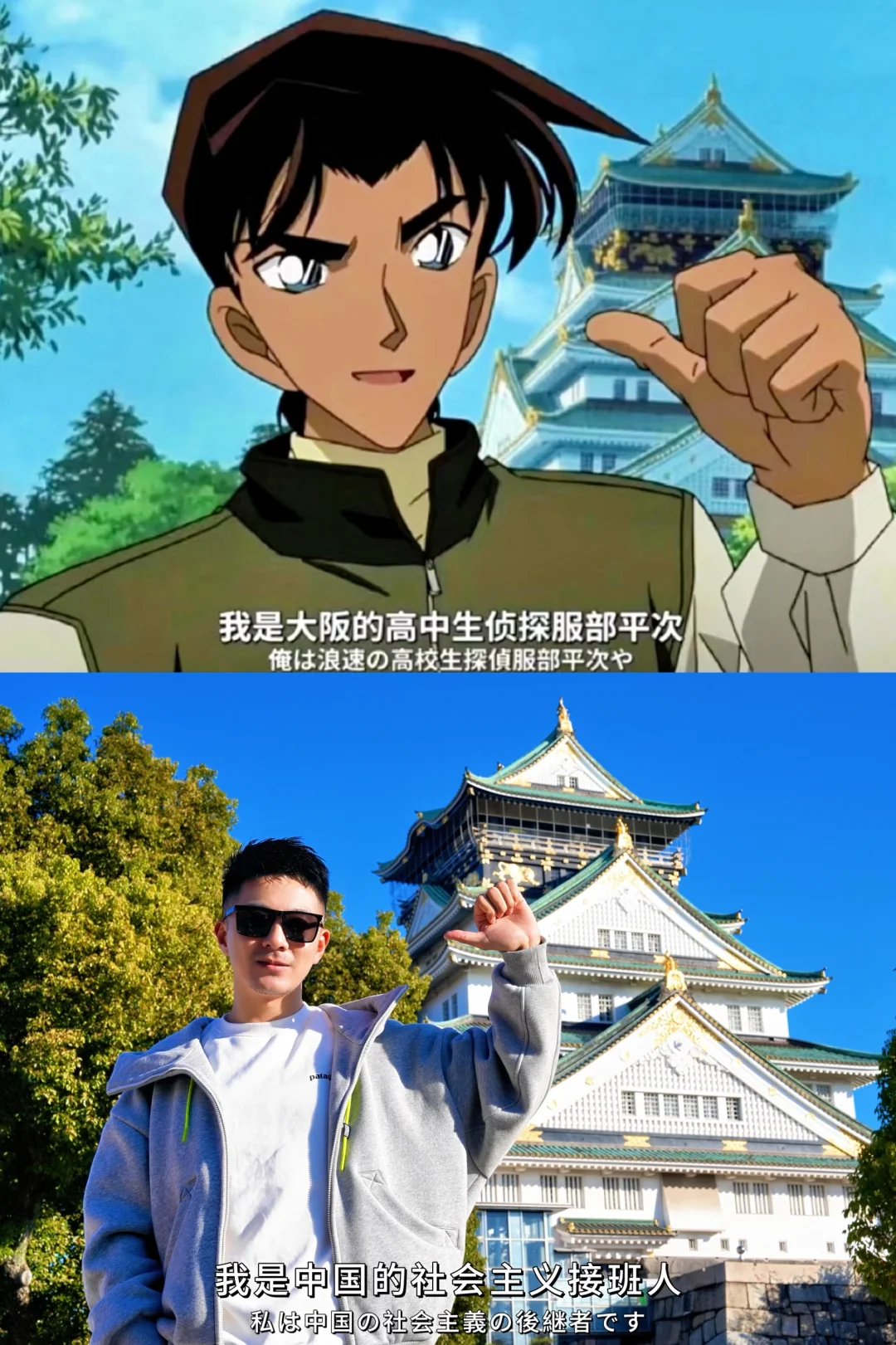 服部平次同款机位,一直往里走就能看到。公园漫步+登阁远眺大阪城市全貌