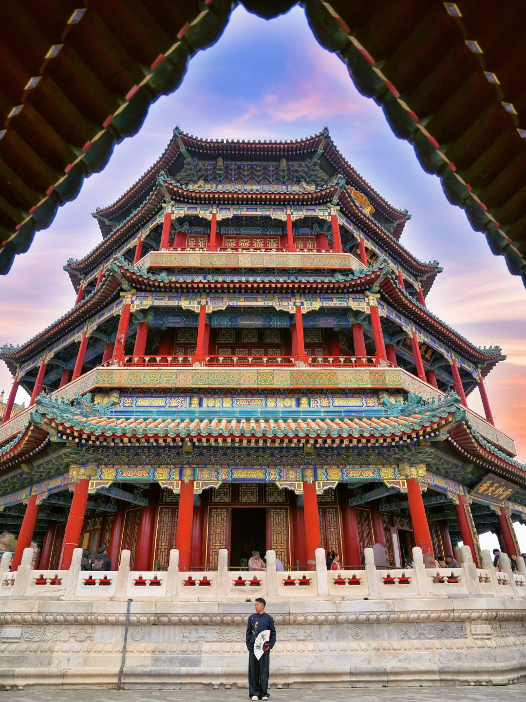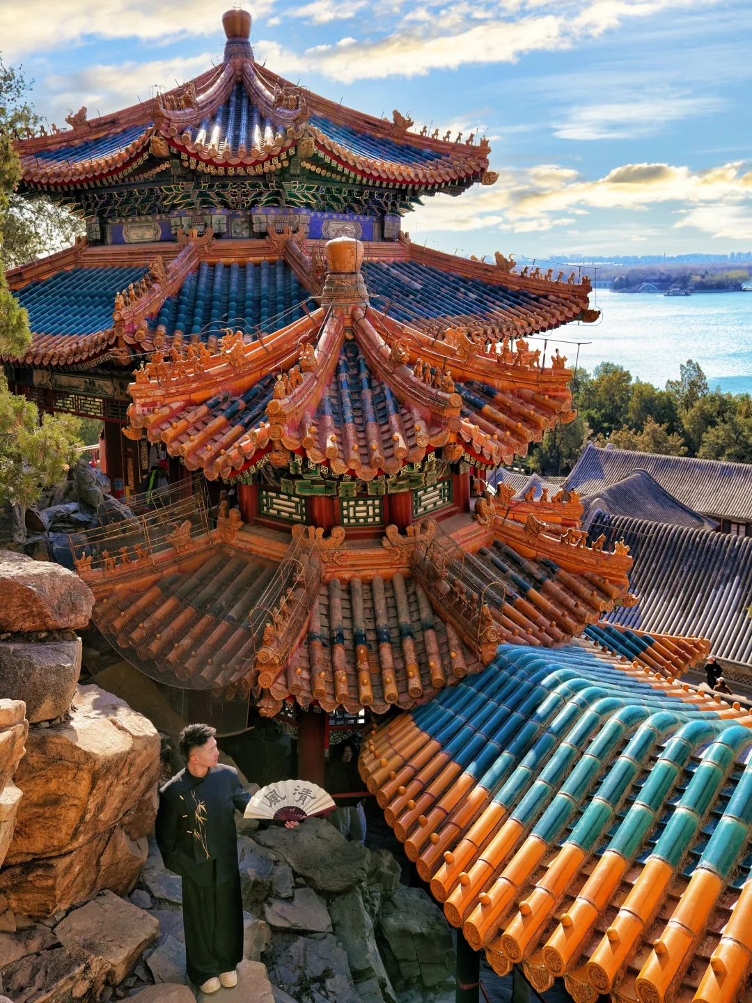 登楼可俯瞰昆明湖和十七孔桥的美景,西北角回廊转角处拍佛香阁整体,很是震撼
