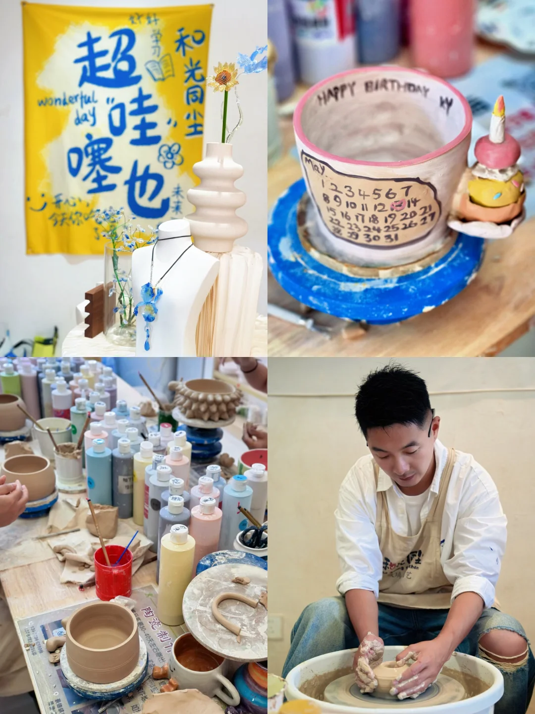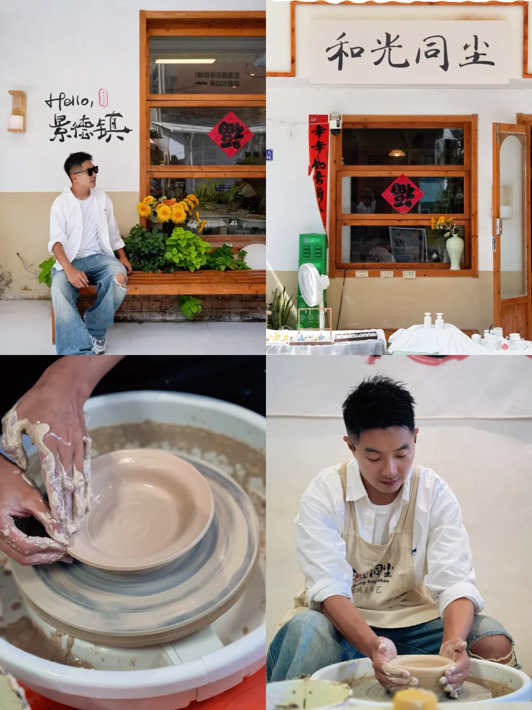 这次跟朋友亲自动手体验了【和光同尘·玻璃·陶艺】这家陶艺制作,手上沾满泥浆,拉胚、捏型、绘画、上色…每完成一步都很有成就感!店内文艺氛围感满满,店员很贴心的教学超nice~门口还可打卡“景德镇”字墙,拍照敲出片👍