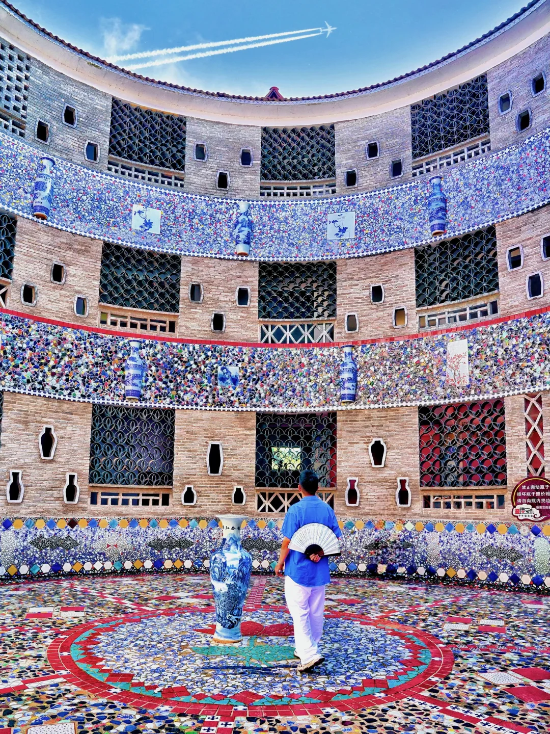 是一位80多岁奶奶倾注毕生积蓄和收藏,镶嵌了数万件瓷片打造而成的瓷宫,很是震撼