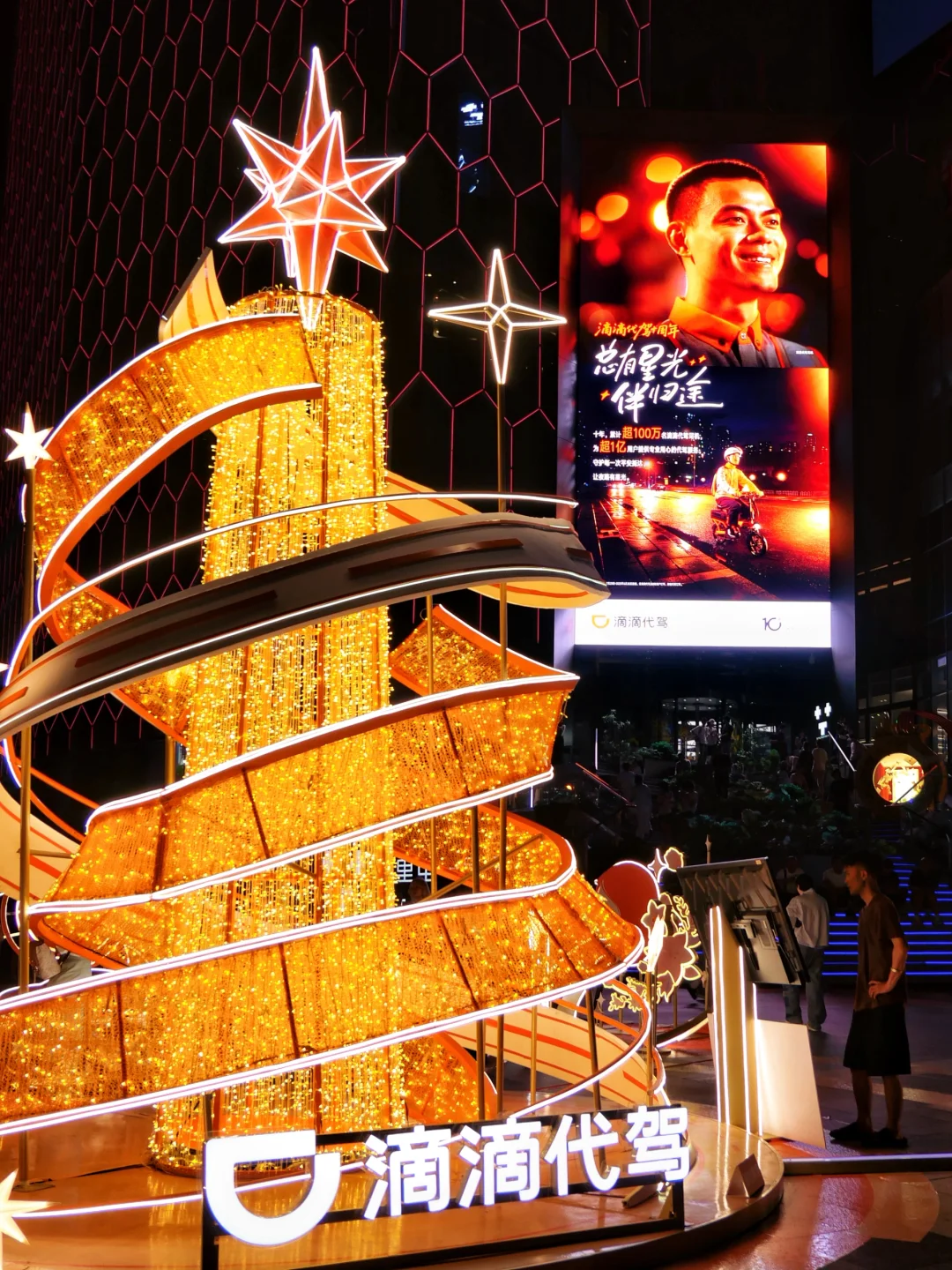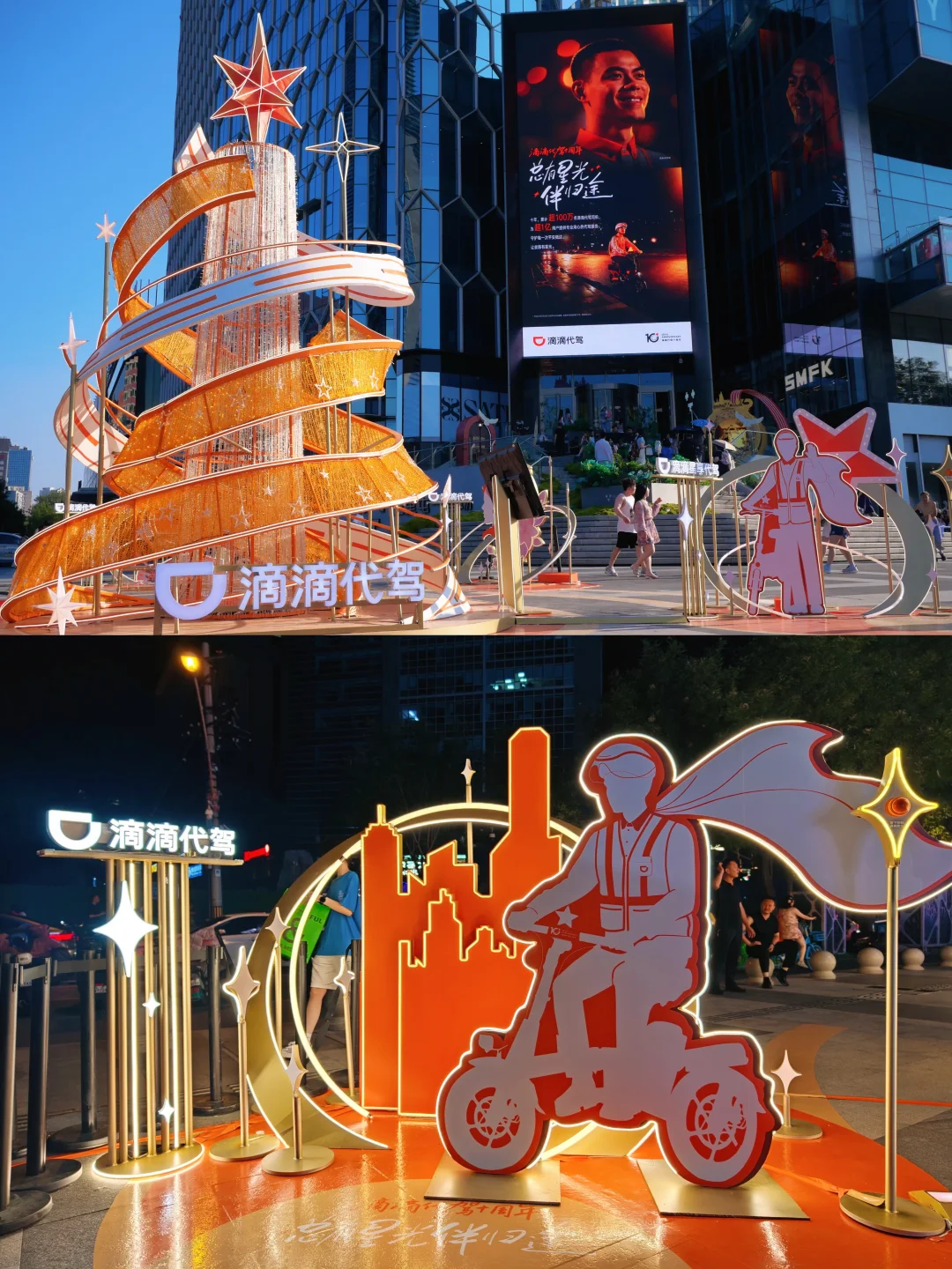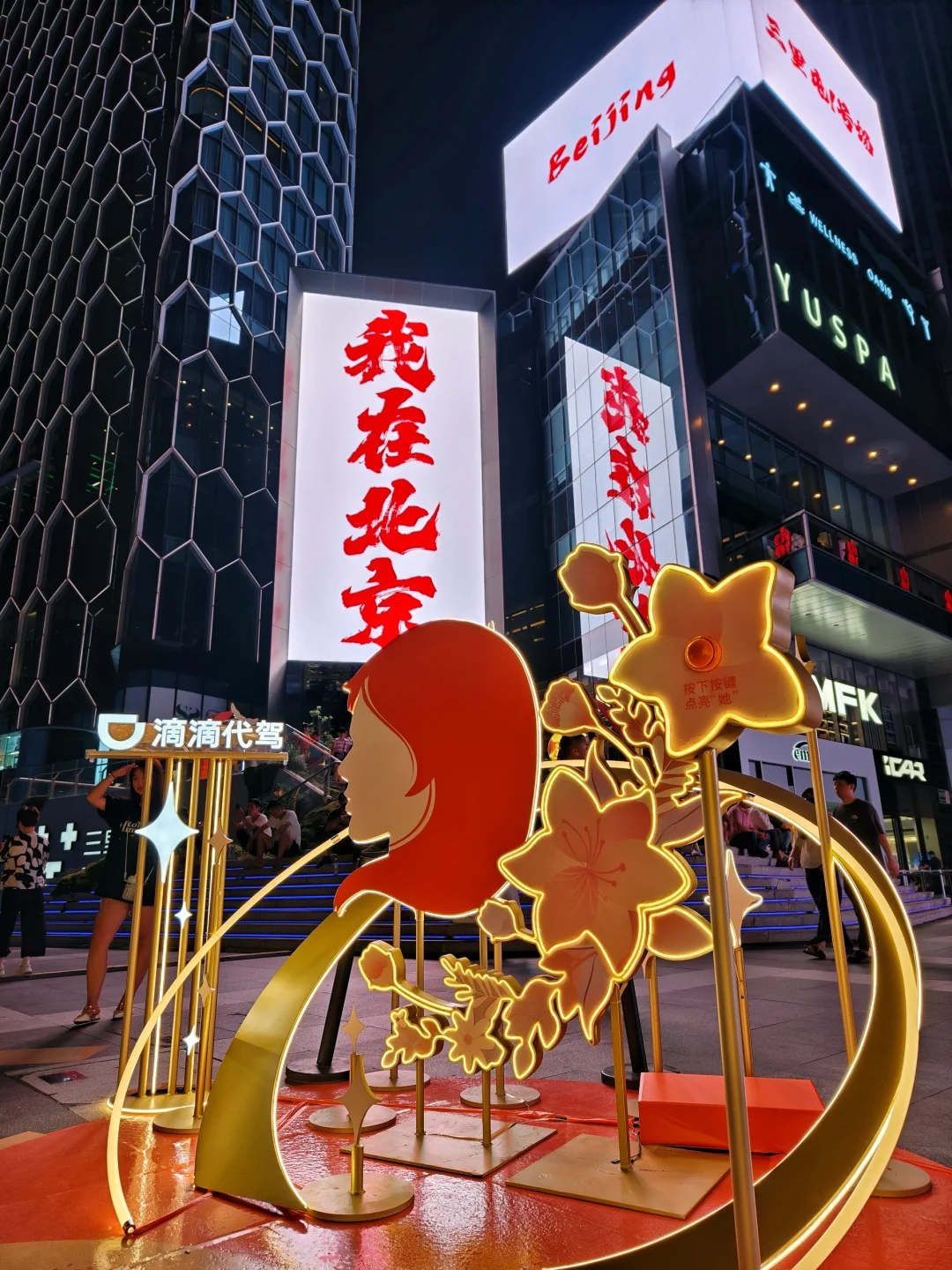 Citywalk游玩路过三里屯通盈中心,偶遇滴滴代驾的快闪,这个设计太用心了~5个不同主题的装置环绕着中间主装置同时按下装置按钮,中间的星星就会升起来✨就像在每个夜晚,有司机们的守护,就总有星光伴归途~