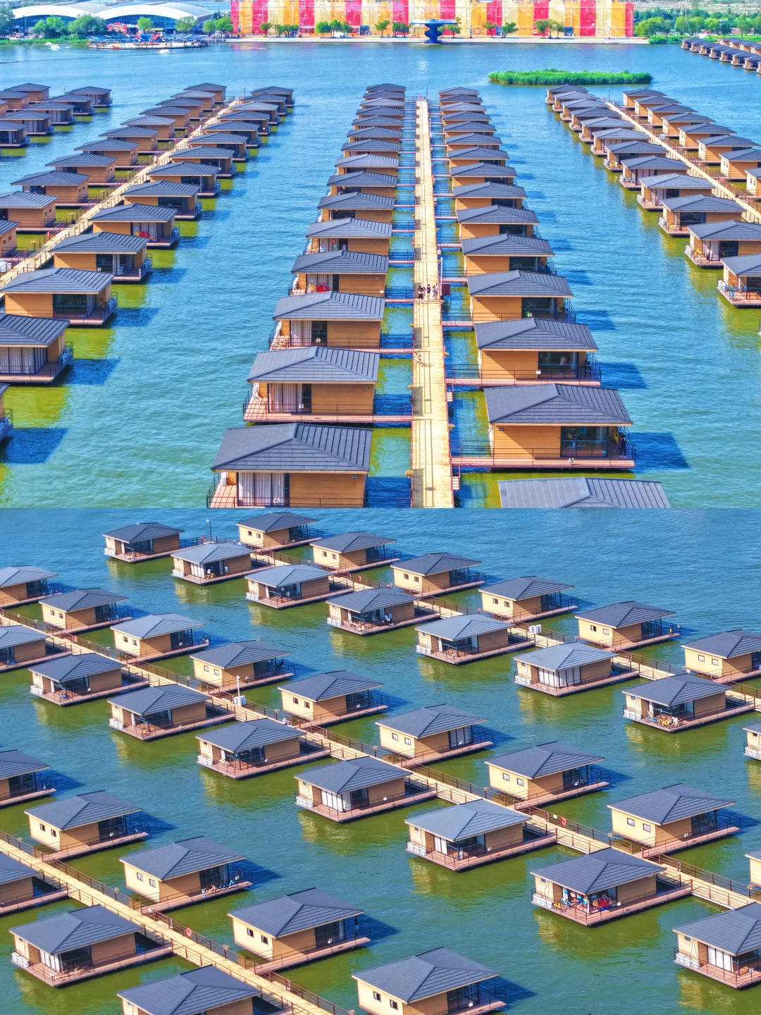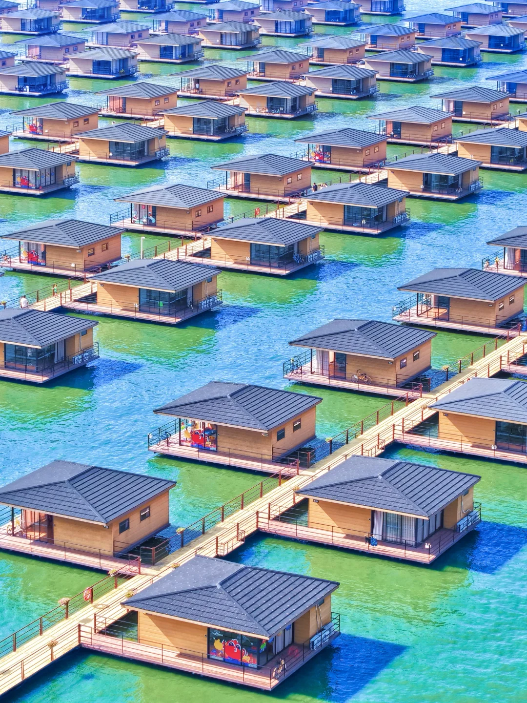 多玛酒店、多玛水镇(水上别墅🛖):全景落地窗+观景台,可在房内钓鱼,适合家庭朋友聚会,国外度假既视感~