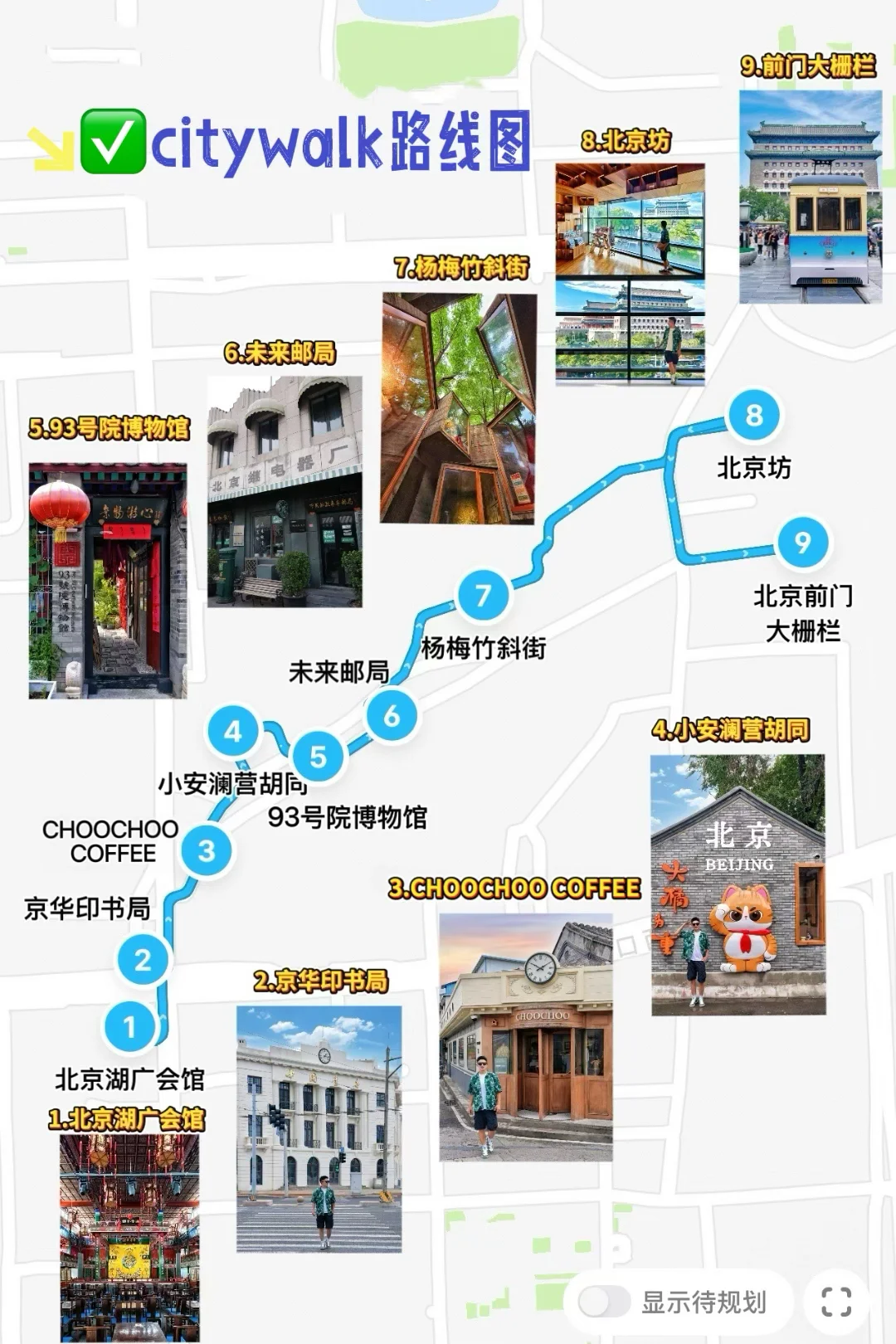 北京湖广会馆➡️京华印书局➡️CHOOCHOO COFFEE➡️小安澜营胡同➡️93号院博物馆➡️未来邮局➡️杨梅竹斜街➡️北京坊➡️前门大栅栏