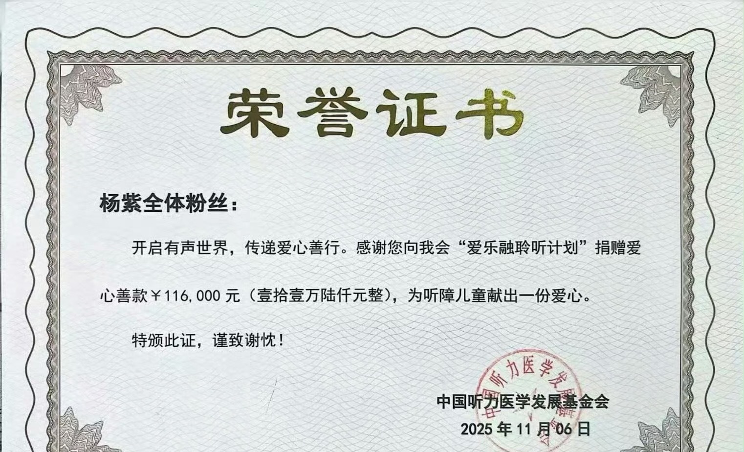 杨紫生日杨紫粉丝给听障儿童捐了116000元,