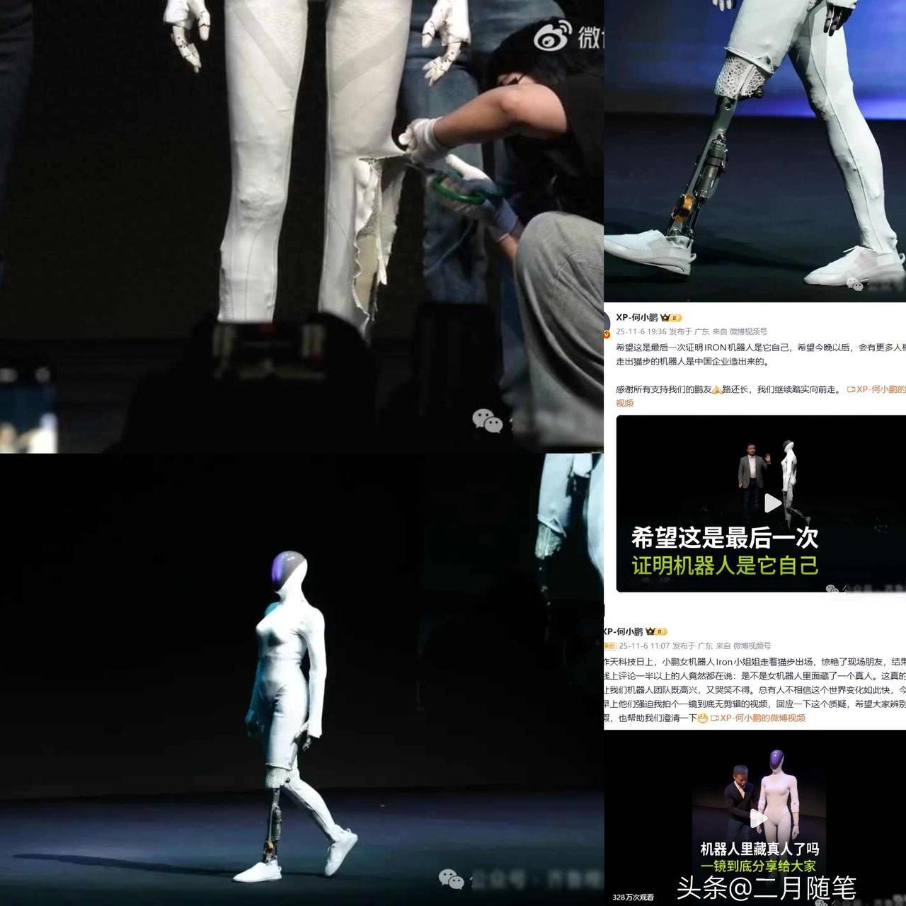 何小鹏发布会哽咽再回应“机器人内藏真人”, 当场剪掉机器人腿部肌肉:希望这是最后一次证明! 在小鹏发布会上, 何小鹏被“机器人里藏人”的传言逼到当场动手—— 直接剪开机器人IRON的腿部外壳, 亮出里面的电机和关节。 机器边运转边被“开膛”, 他哽咽道: “希望这是最后一次证明。” 其实真不怪大家怀疑。 这机器人走路实在太轻盈了,像猫一样灵活, 和传统机械的僵硬感完全不同! 但小鹏这次玩真的: 早上先发视频展示内部结构,晚上直接直播拆解, 连运动中的内部构造都亮出来。 要说这机器人确实有两把刷子。 它用的是晶格肌肉和谐波关节技术, 目标2026年量产, 走的是和特斯拉Optimus类似的路线。 资本市场很买账—— 消息一出, 小鹏港股应声上涨, 市值冲上1700亿。 现在搞技术就得这么实在。 与其解释一百遍, 不如直接亮底牌。 你看特斯拉Optimus和波士顿动力Atlas, 现在都直接“裸奔”了。 信任这东西, 在科技行业比参数更重要! 小鹏人形机器人 小鹏高管 小鹏无人汽车 北京小鹏