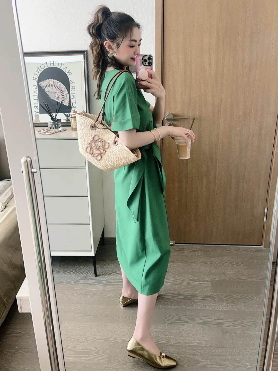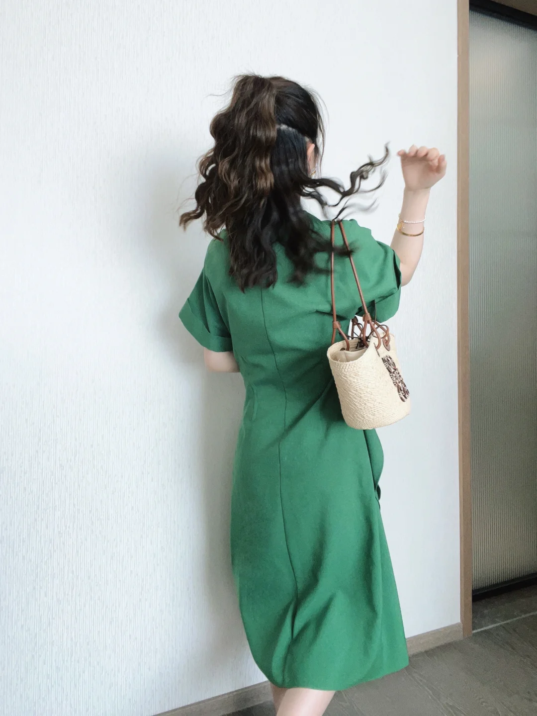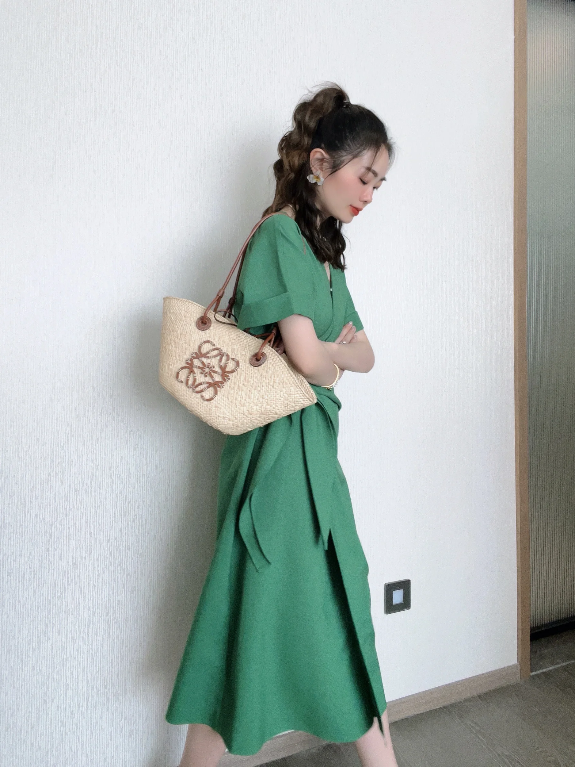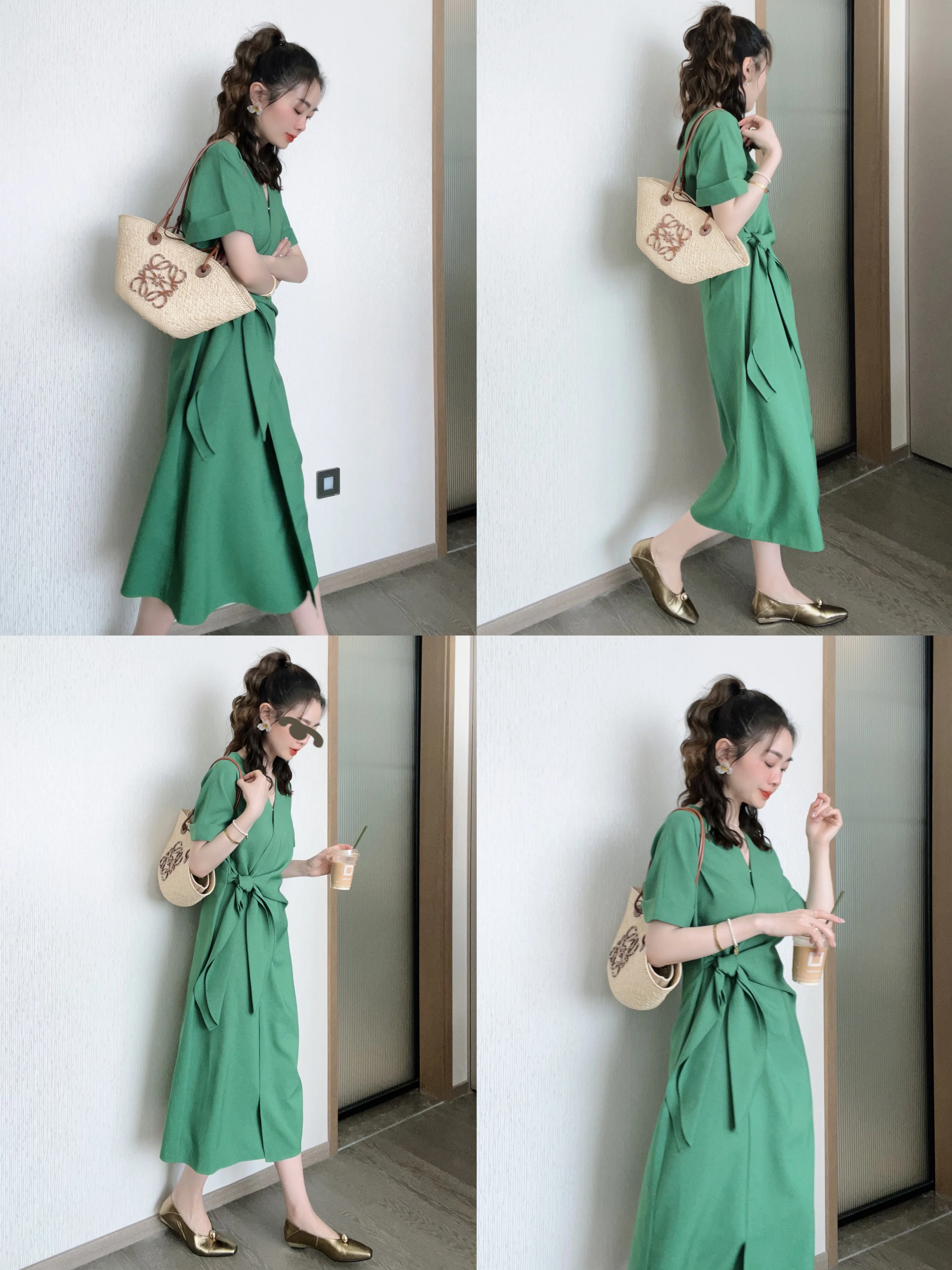 心心念念的度假连衣裙就这么水灵灵的穿上啦!👗👒 绿色怎么能这么显白的~~~ 再熬一熬就能出去度假了!!心已经飞去海边啦👒🌸🌳🍐🌺