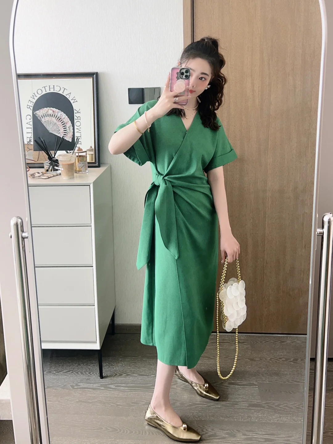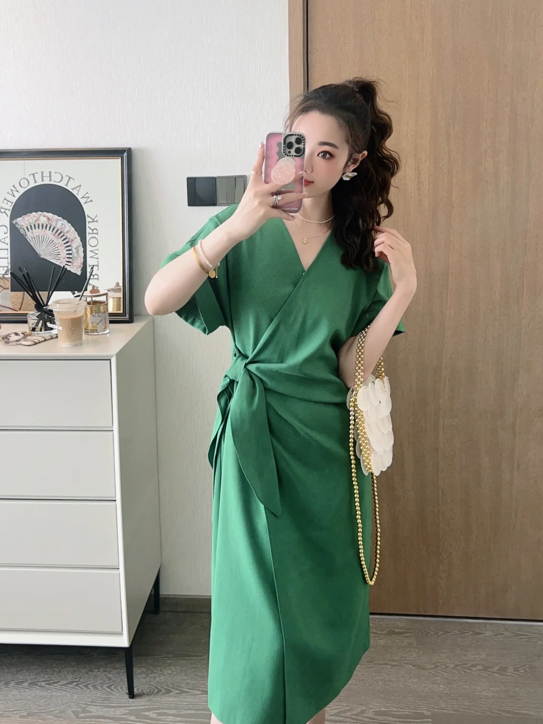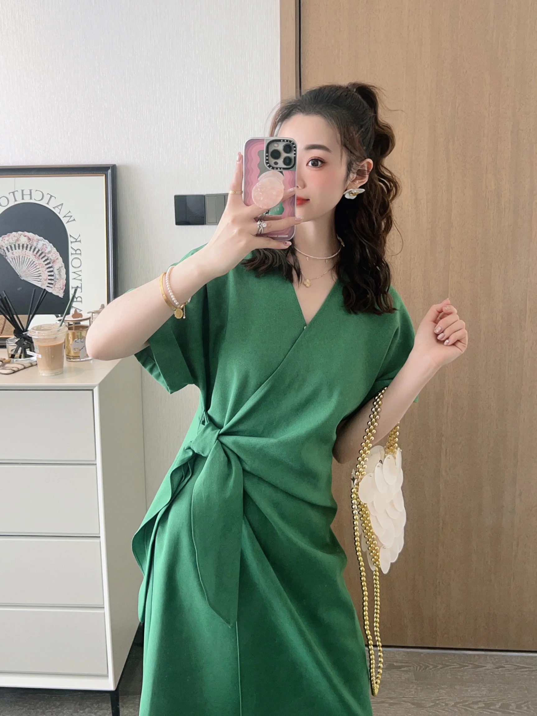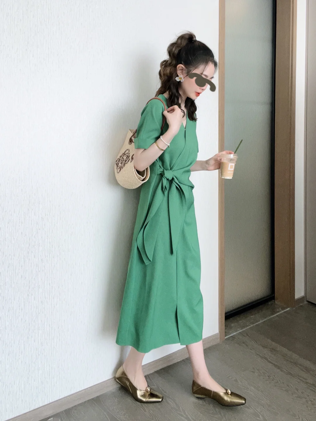 心心念念的度假连衣裙就这么水灵灵的穿上啦!👗👒 绿色怎么能这么显白的~~~ 再熬一熬就能出去度假了!!心已经飞去海边啦👒🌸🌳🍐🌺