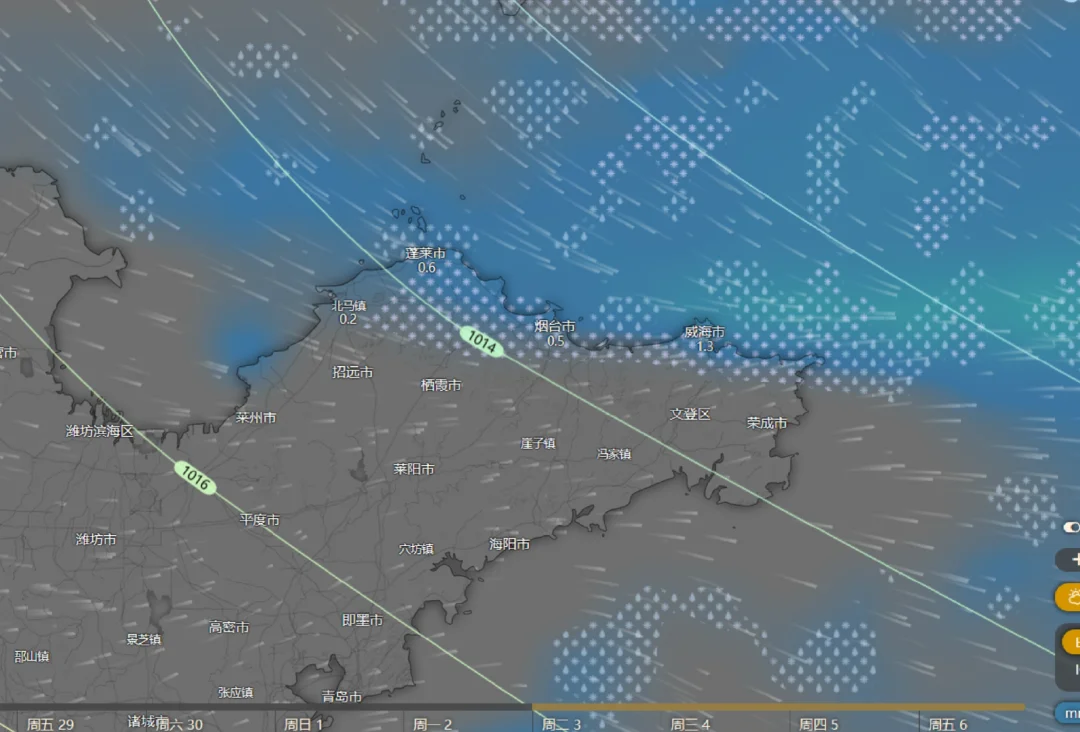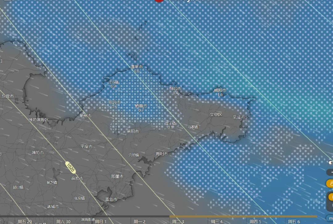 昨天夜间到今天上午,半岛东部地区受西北冷气流和偏西气流辐合影响,出现大范围冷流降雪过程。烟台北部和中部、威海北部等地出现中到大雪,威海北部沿海一带出现暴雪,最大降雪量为12.1毫米(积雪深度7厘米,暴雪量级),出现在成山头。