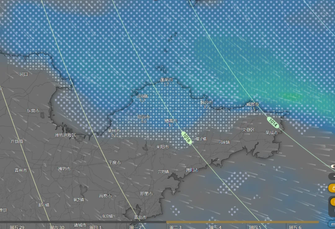 预计今天白天半岛东部地区降雪仍将持续,最强时段为今天凌晨到白天,入夜之后降雪开始减弱。官方天气预报:27日白天到夜间,烟台北部和威海北部天气阴有小到中雪局部大雪,其他地区天气晴间多云。北风,滨州、东营、潍坊、日照、半岛地区和内陆湖面6~7级阵风8~9级减弱到5~6级阵风7~8级,其他地区4~5级阵风6~7级。夜间最低气温:鲁南和沿海地区1℃左右,其他地区-2℃左右。