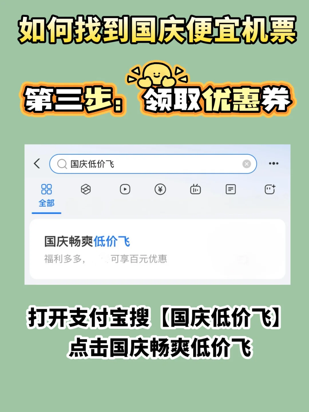 同样在支付宝App搜索【国庆低价飞】,进入活动页面!