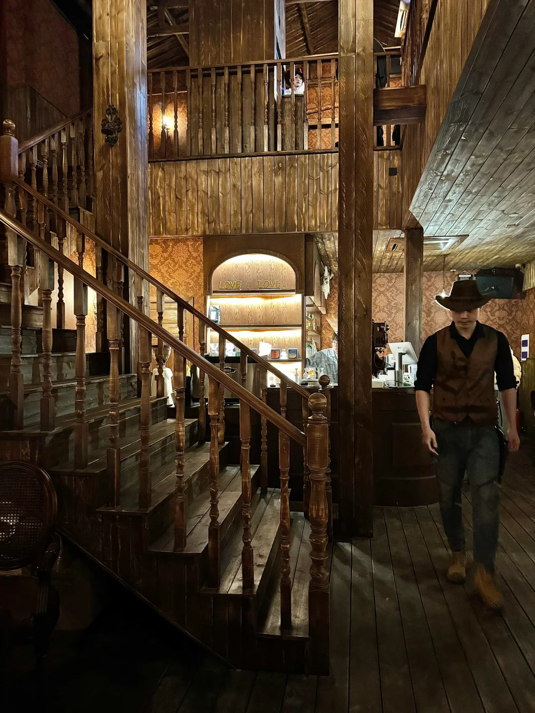 真的是那种一眼惊艳的店,沉浸式还原了荒野大镖客的场景~复古风+灯光+西部牛仔风…尊嘟很好拍~晚上来这边和姐妹小酌聊聊天~白天还可以喝咖啡☕️拍拍照~敲快乐的!!