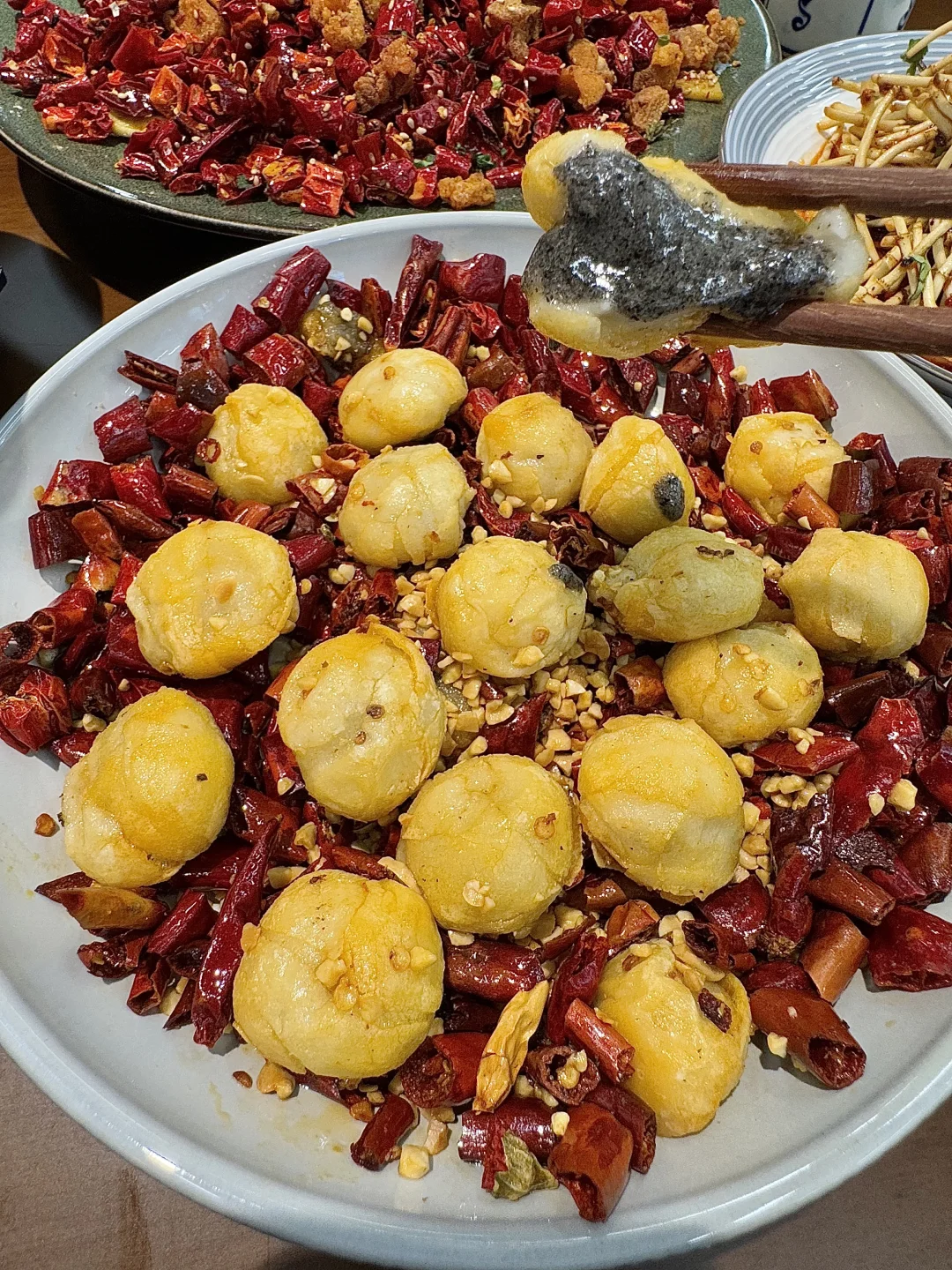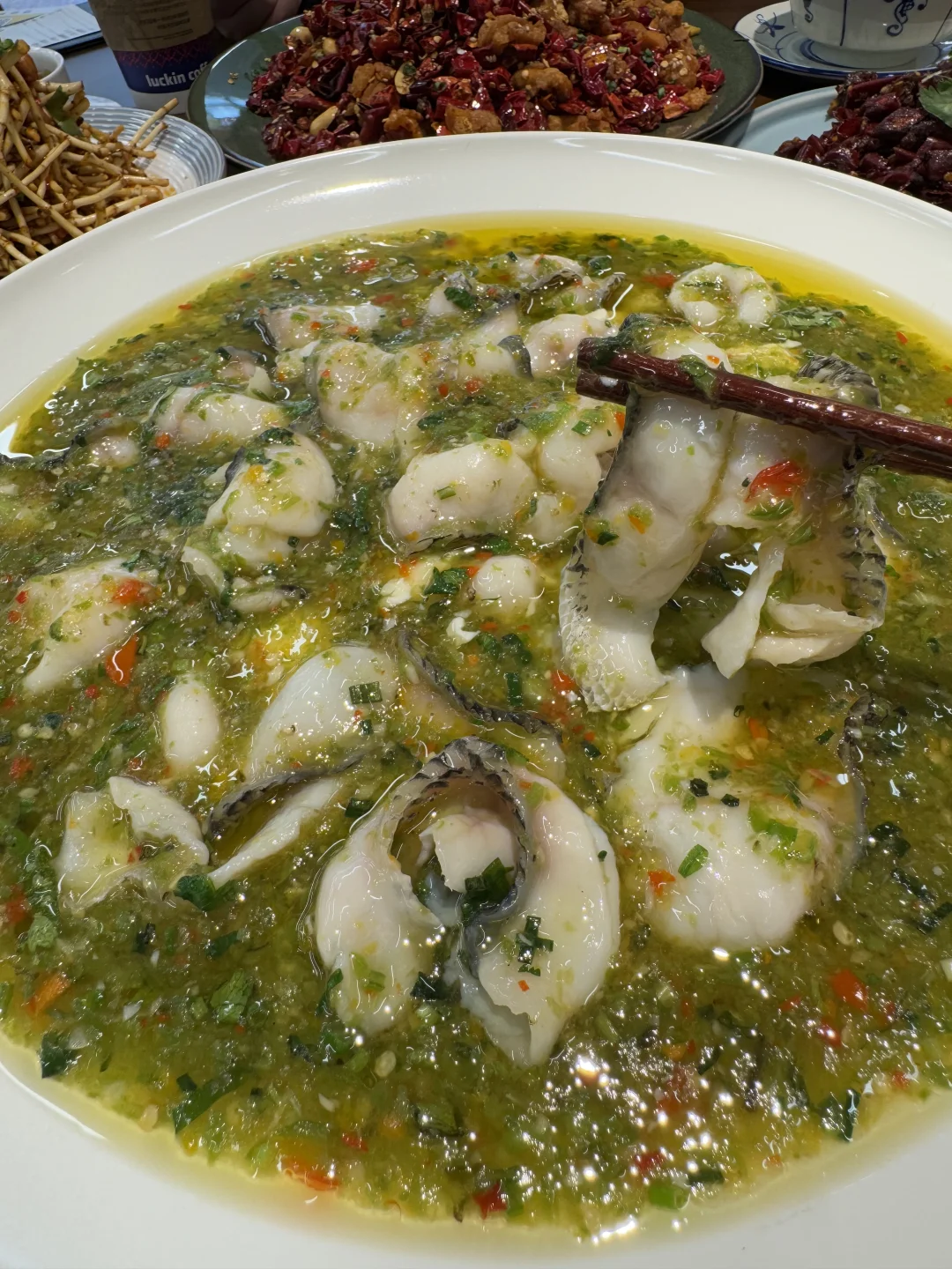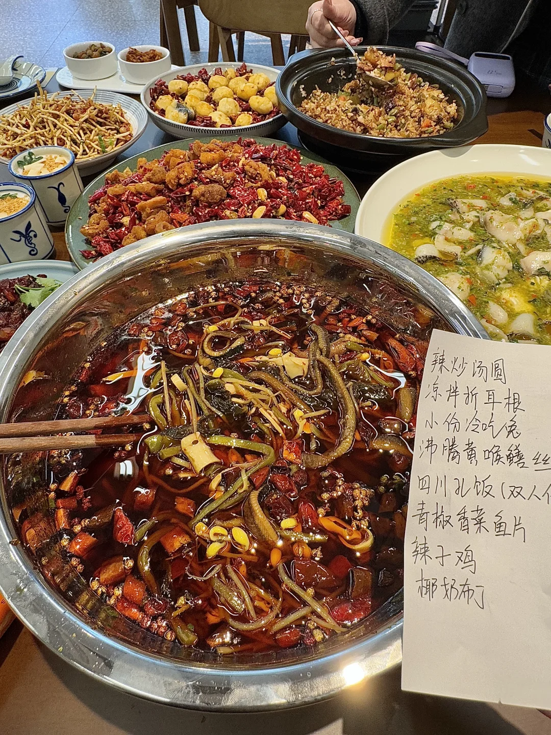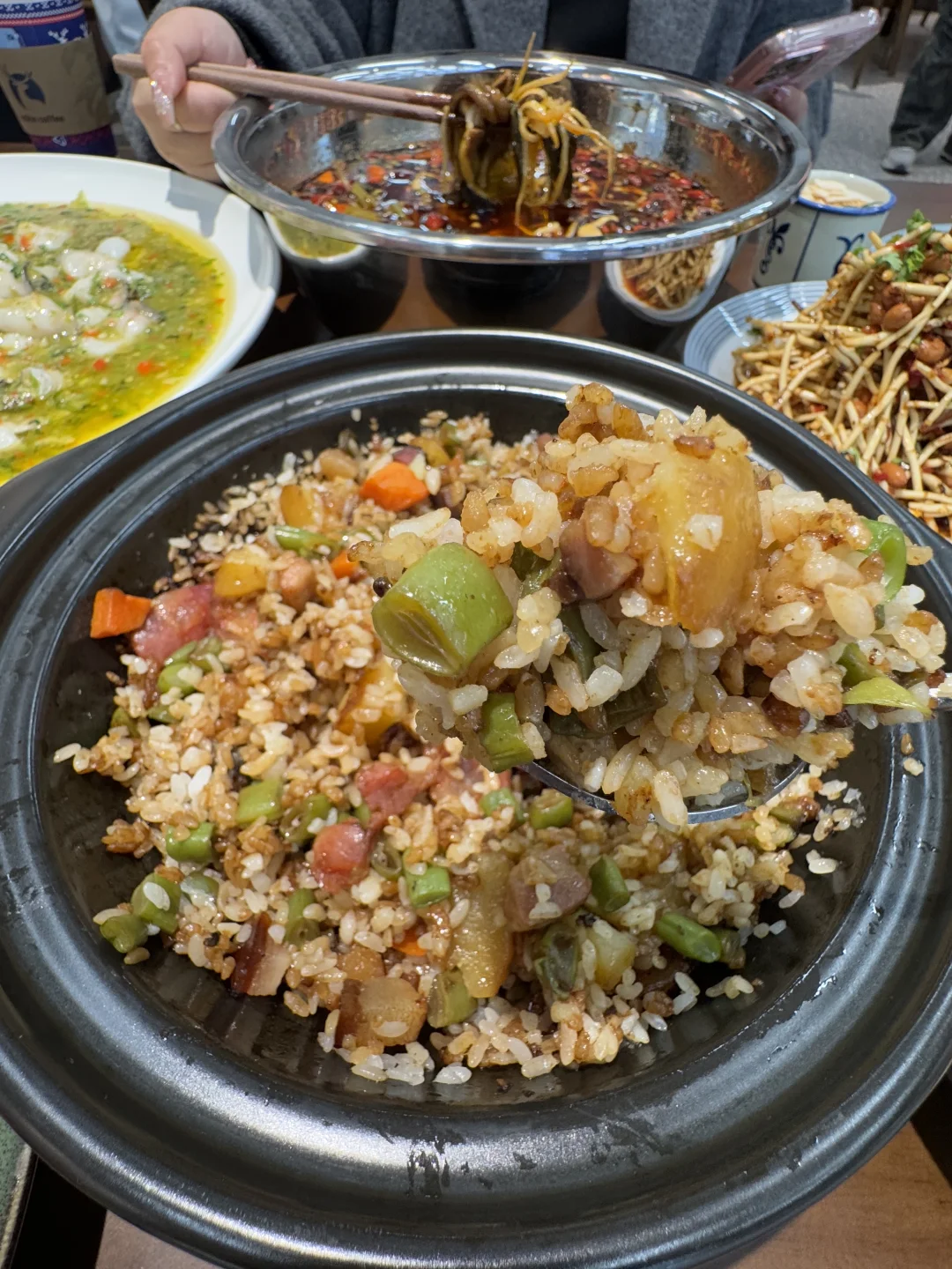 好吃哭😭~孔饭真是直戳我的心巴,腊肉咸香~土豆和四季豆软糯入味,锅巴脆脆的泰香了!! 沸腾黄喉鳝丝、炒炒汤圆、青椒香菜鱼片…每一个都吼吼吃!辣的嘶哈嘶哈也停不下嘴……